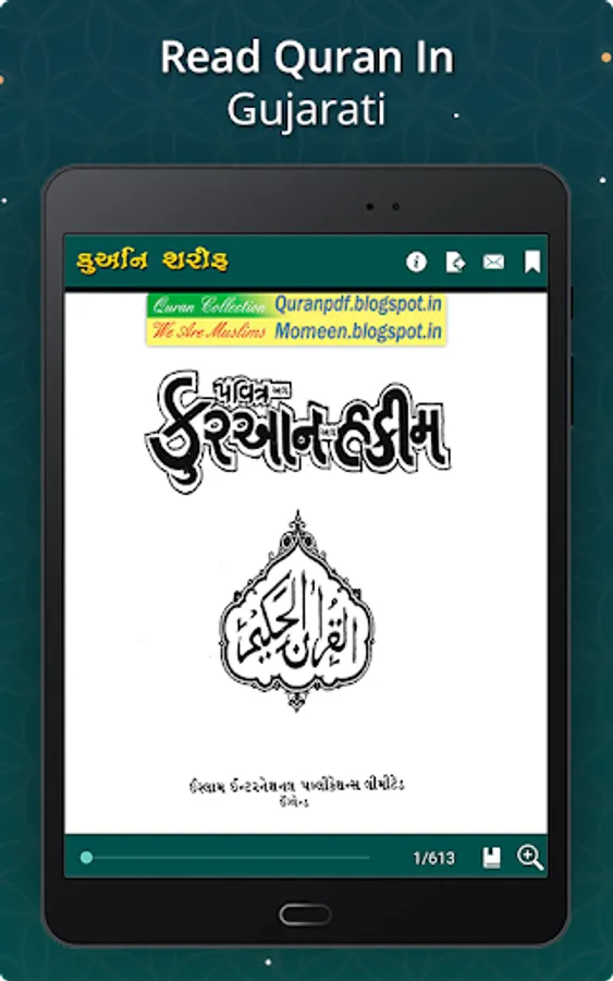 - Holy Quran in Gujarati is an Android application designed to help Gujarati Muslims understand the important teachings of the Holy Quran. This Gujarati Holy Quran app translates every Arabic word into Gujarati
