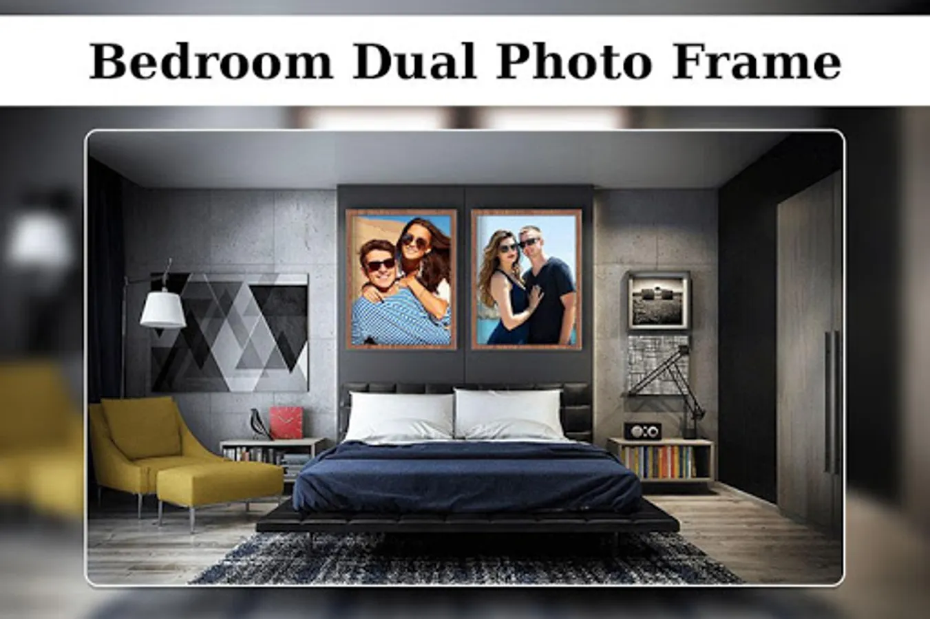 Bedroom Dual Photo Frame has a beautiful collection of bedroom frames for couple, where you can set your photo in bedroom frames. No matter where you are, you can use this best bedroom photo editor to wrap your images.