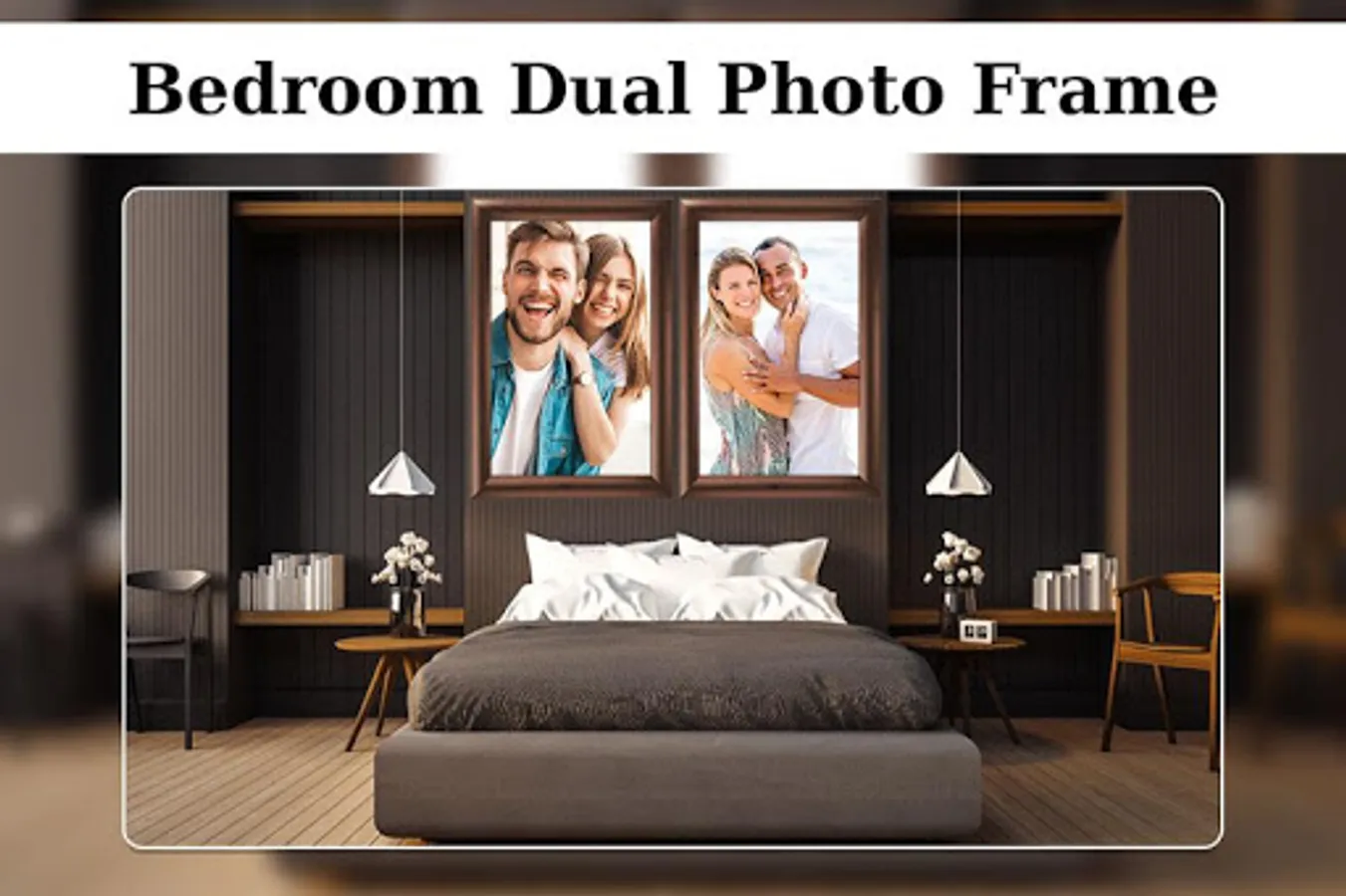 Special bedroom dual photo frame where you can set your photo with your loved one and looks like real photo is posted in bedroom.