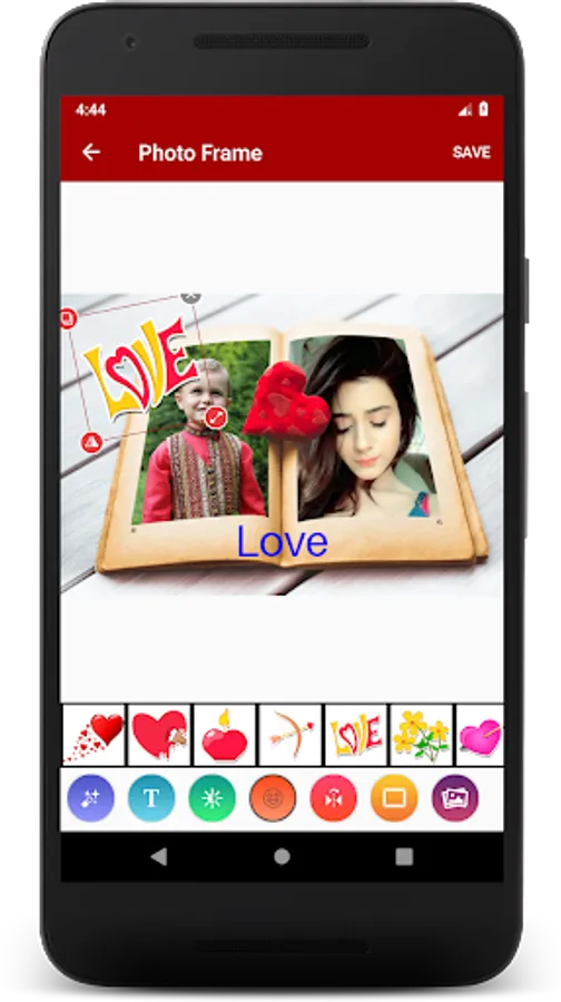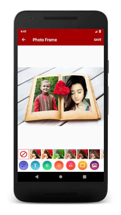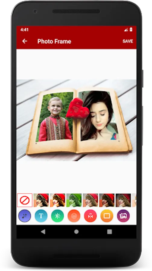 You can add text, apply filters, beautiful stickers and other more features on book dual photo frame.