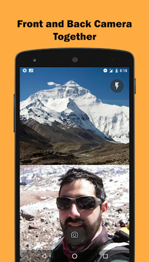 from both cameras - rear camera (rear) and selfie camera (front), with support for background recording.