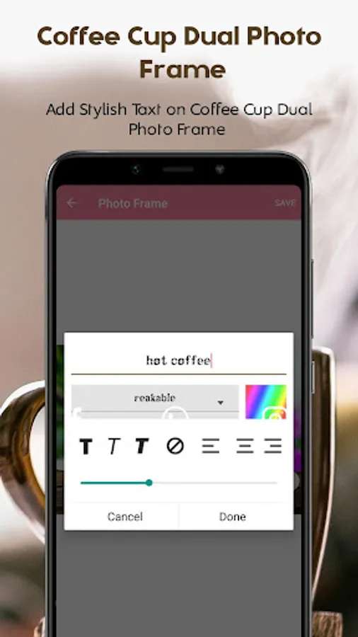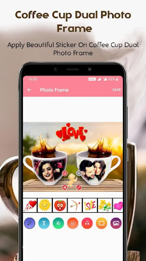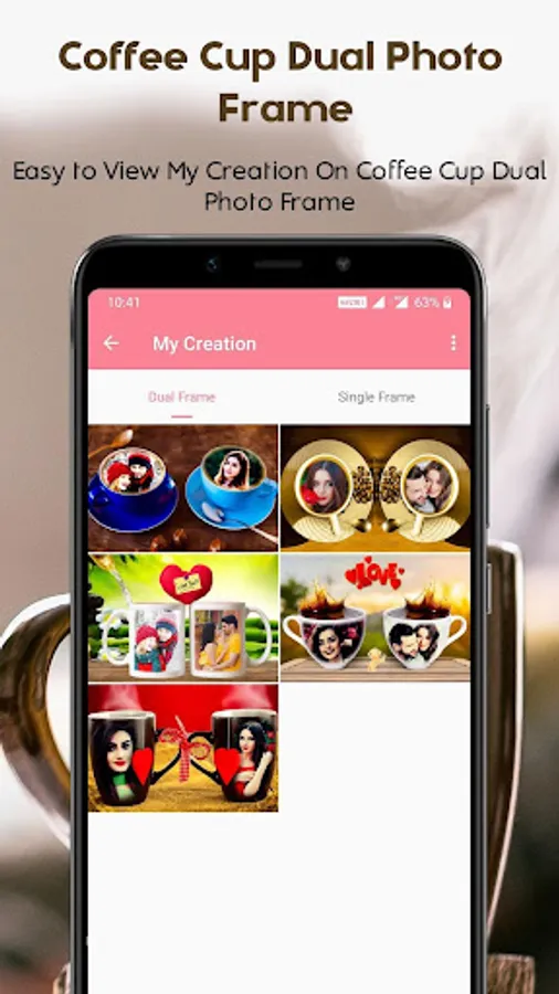 Create your own beautiful coffee cup dual photo frames and share it to your loved ones or set it as your device wallpaper.
