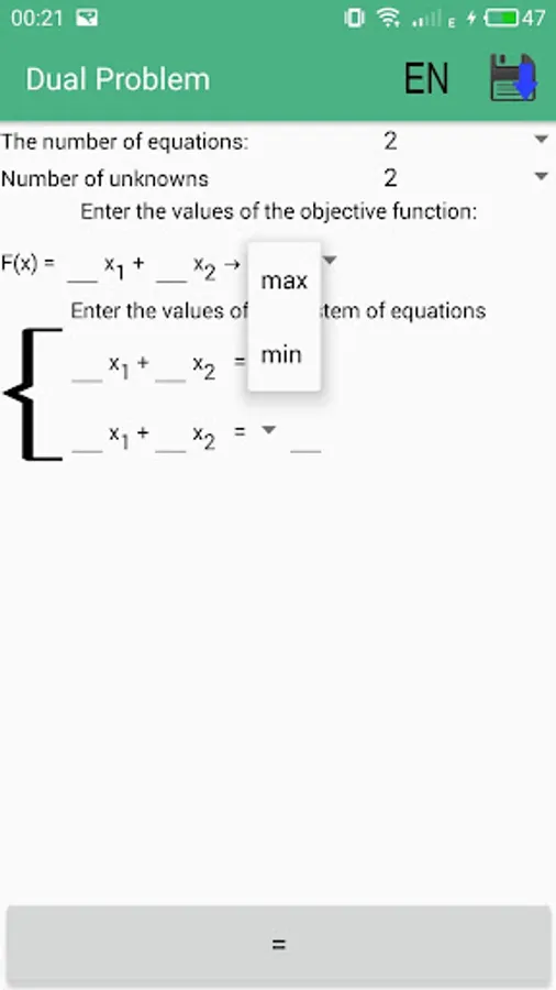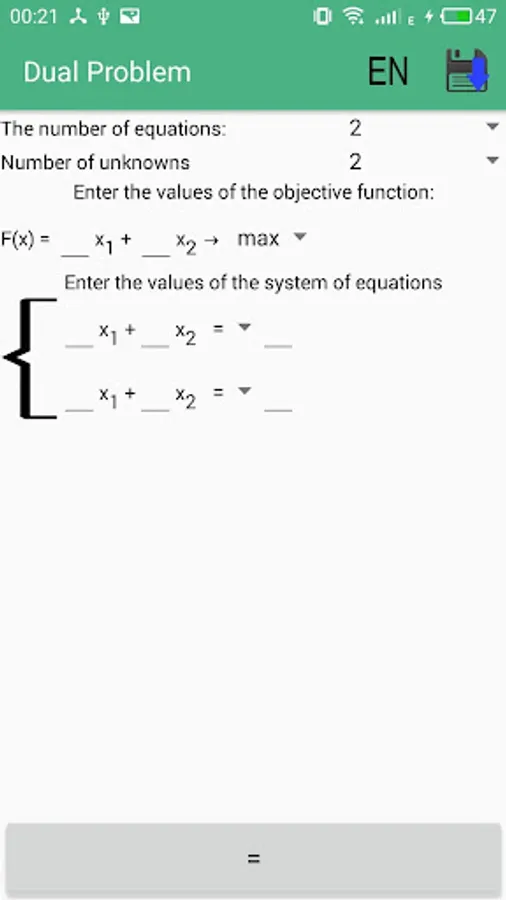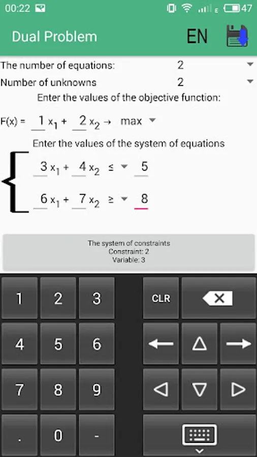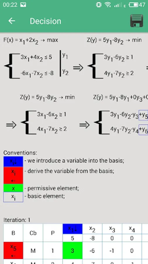 In this application there is an opportunity, very quickly and easily, to solve the dual simplex WITHOUT INTERNET ACCESS. Also in the application a very convenient, understandable interface and solutions are described in detail step by step