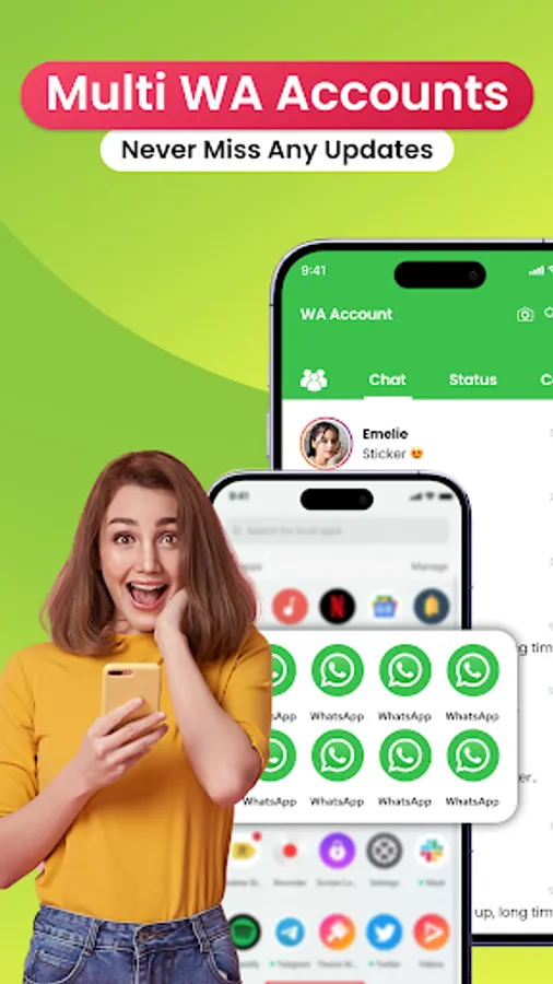 Do you want to make your own private account that cannot be found? Dual Space builds a privacy zone for you, leaving no trace in the phone system. It can make your private duplicate WhatsApp account hidden and can not be seen by others, so your data security is ensured and your privacy is protected.