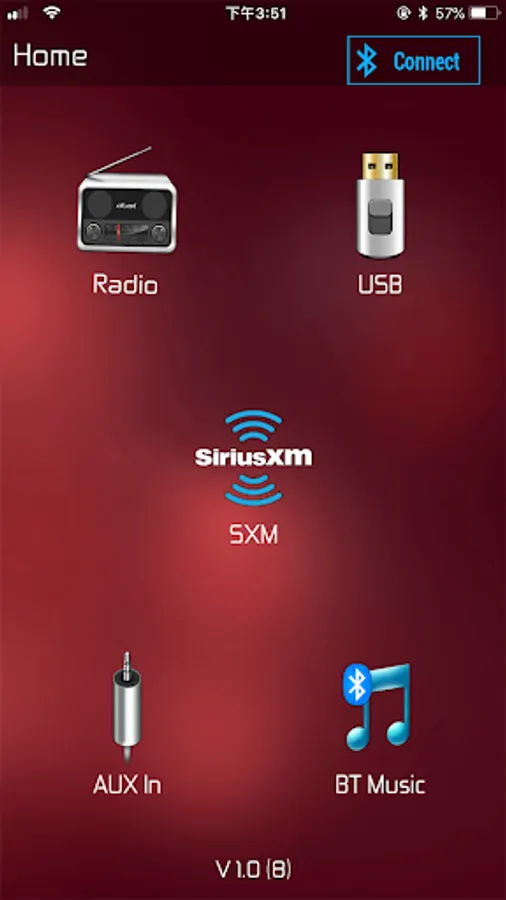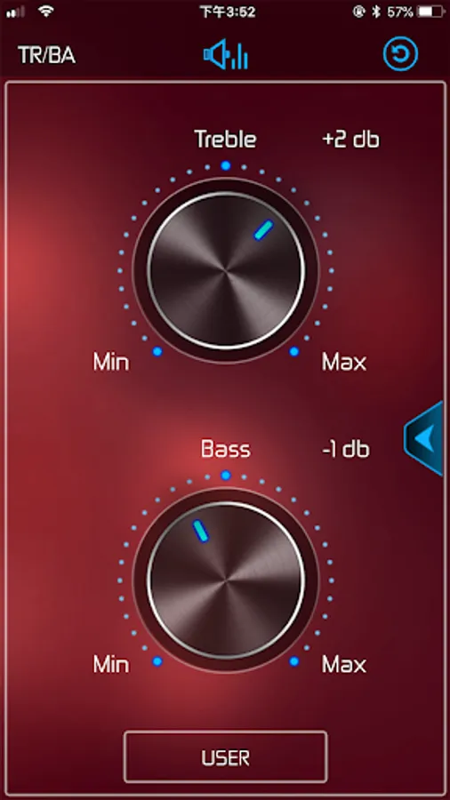 The app also features audio control such as treble/bass/volume level control of the connected radio.
