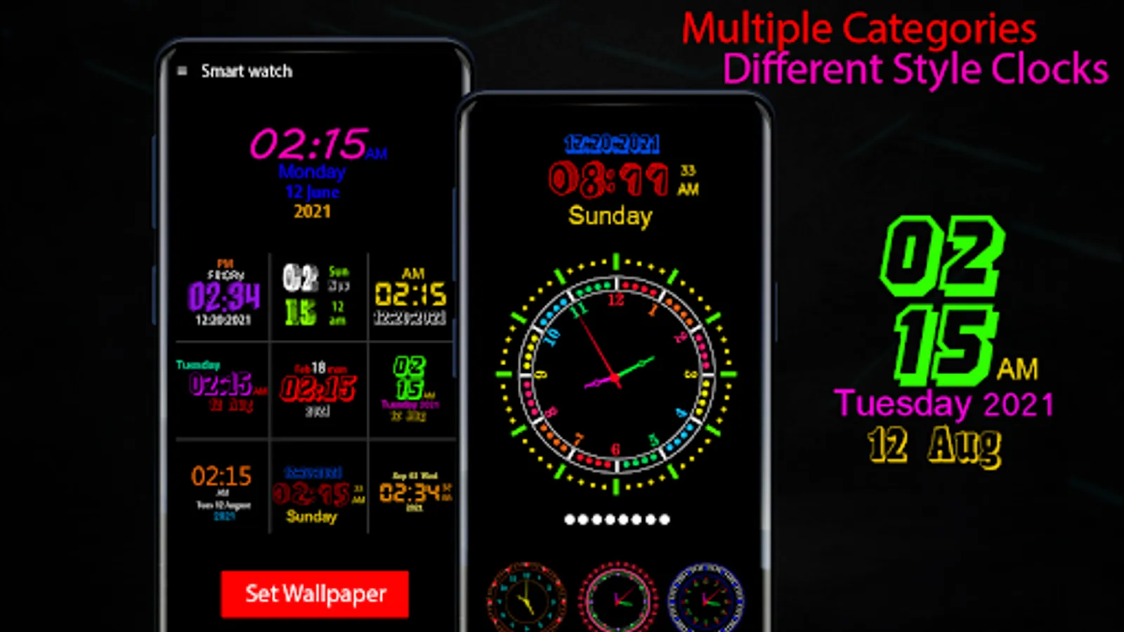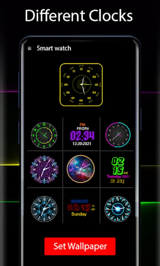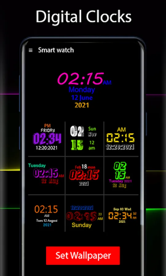 ● Different colorful digital clock styles