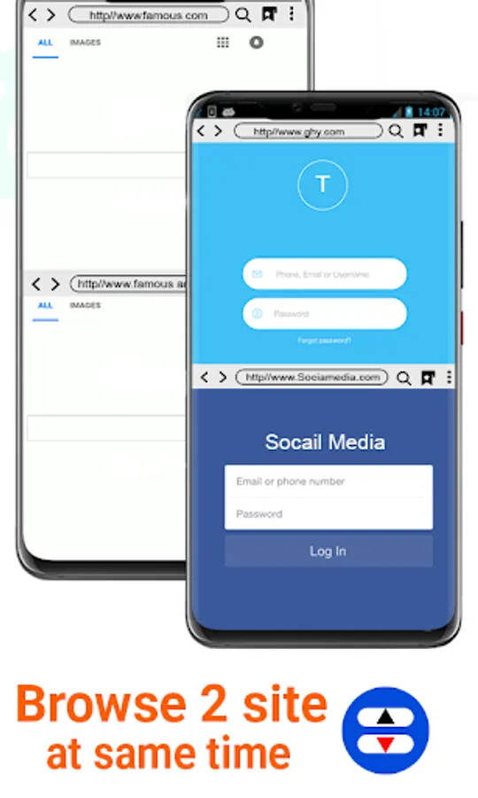 Dual browser: Private Browser app is a dual browser app which lets you learn dual working or multitasking. A dual browser for private browsing which lets you perform dual tasks on the same browser without opening and switching other tabs. Fastest browser with multiple window to let you enjoy videos songs and read articles or use social media right at one place. A browser that keeps no history and does not track any data & maintains your privacy. Download Dual Browser multitasking browser which is easy to use & is user-friendly app. This is a splitscreen fast browsing application for phone which lets internet splitscreen fast browsing application. Dual Browser private browsing is the best split screen browser for phone to help you with your work and lets you do dual work at one place. The app has dual space for two separate browser both in landscape and portrait mode to choose from.