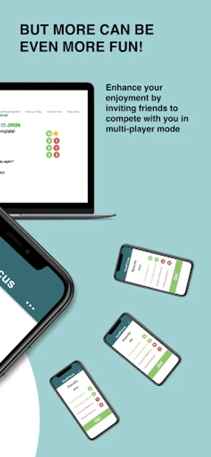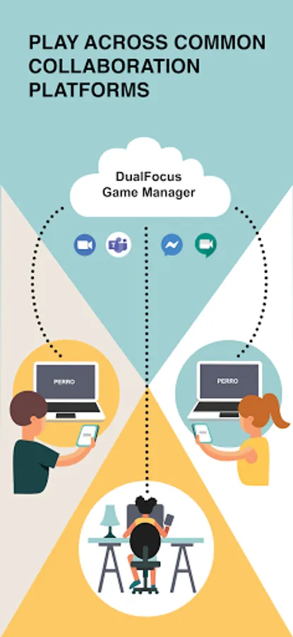 Two or more people can join a single MatchFlash game in the same room or virtually. Socially distanced groups can easily play Dualfocus with the online collaboration services they are already using, like Zoom, MS Groups, Facebook Messenger, Google Meet, Skype etc.