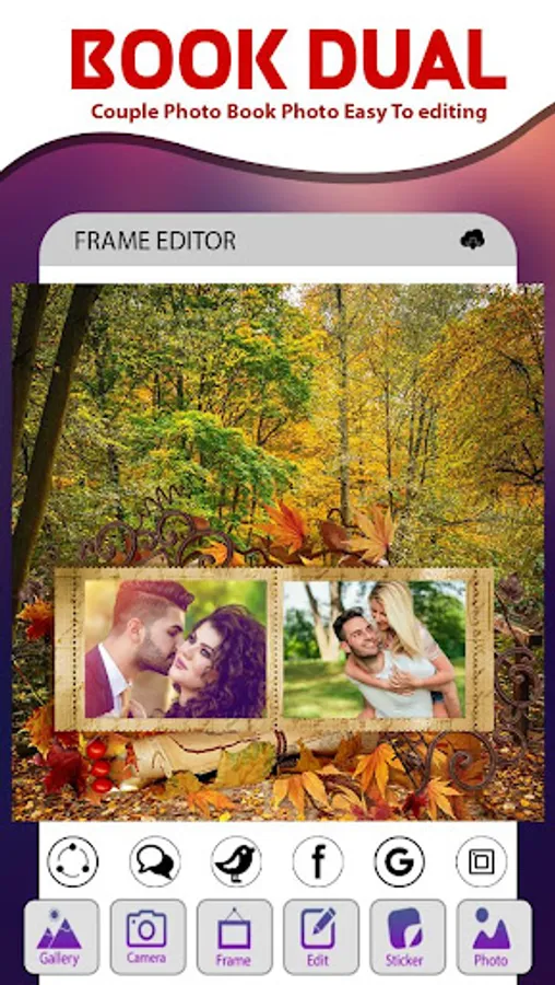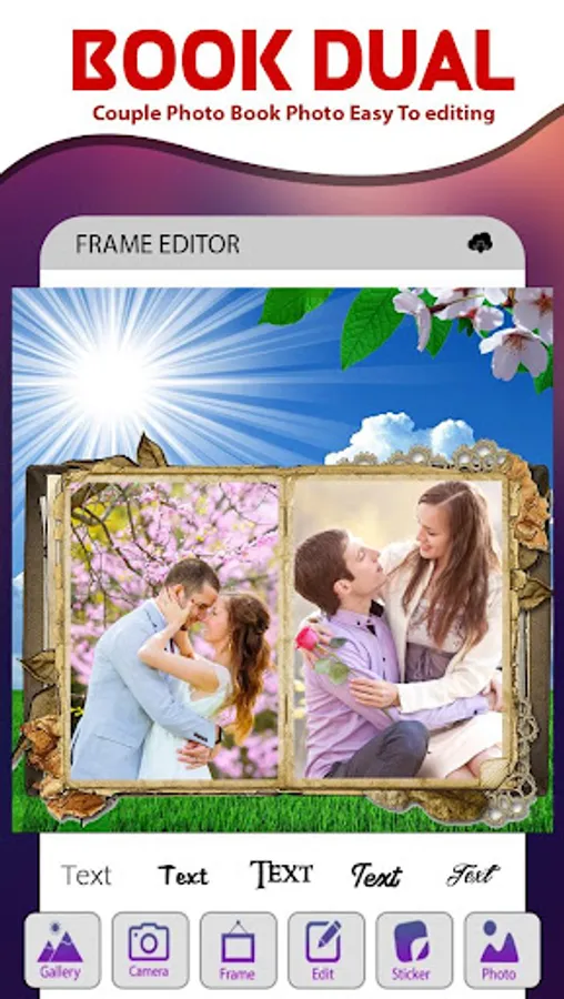 An easy to use this app and to create Dual Photo with Dual Book Frame. The app contains many self-designed photo frames where you can place dual photos of you and your partner.