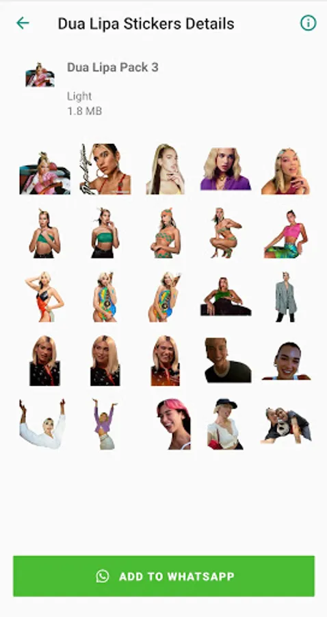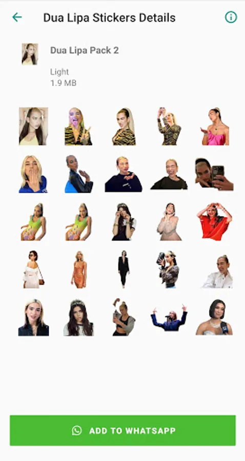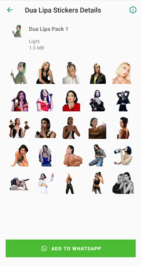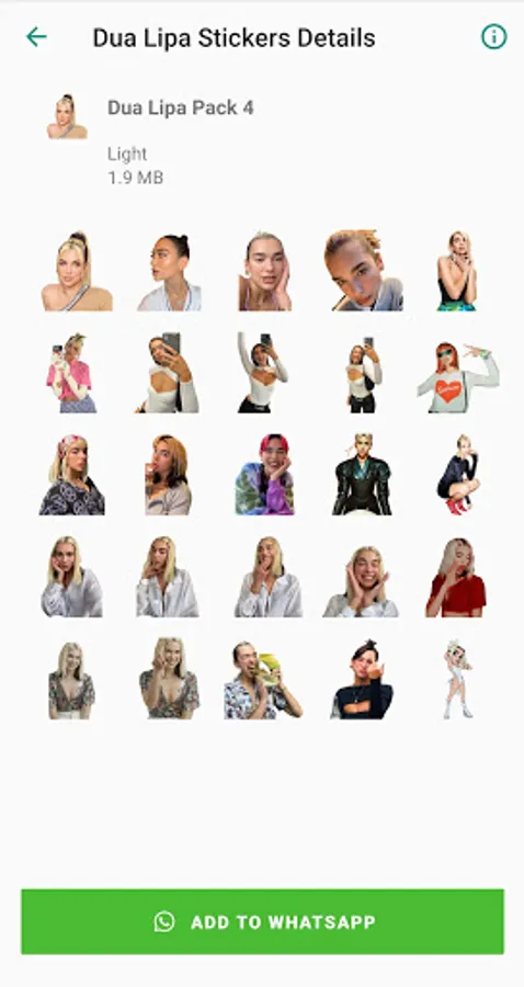 Stickers packs for WhatsApp about the famous pop singer Dua Lipa
