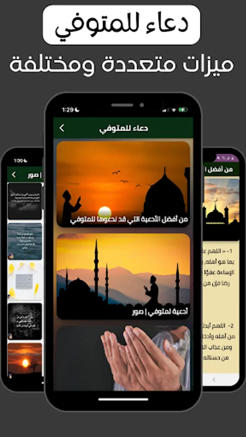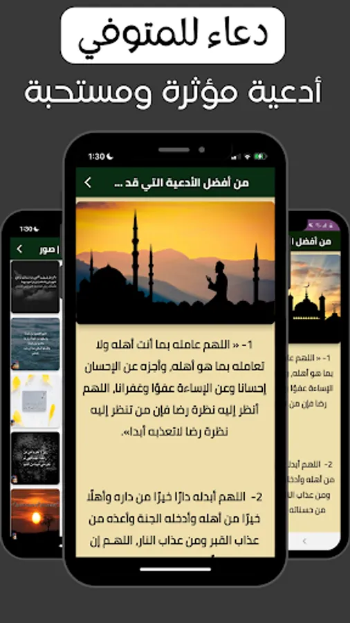 The application of supplications for the deceased is characterized by its comprehensiveness, where you will find supplications for the deceased written and pictures as well as supplications heard, and not only that, but also the virtue of supplication for the dead and reading the Qur’an, especially Surah Yassin for the deceased