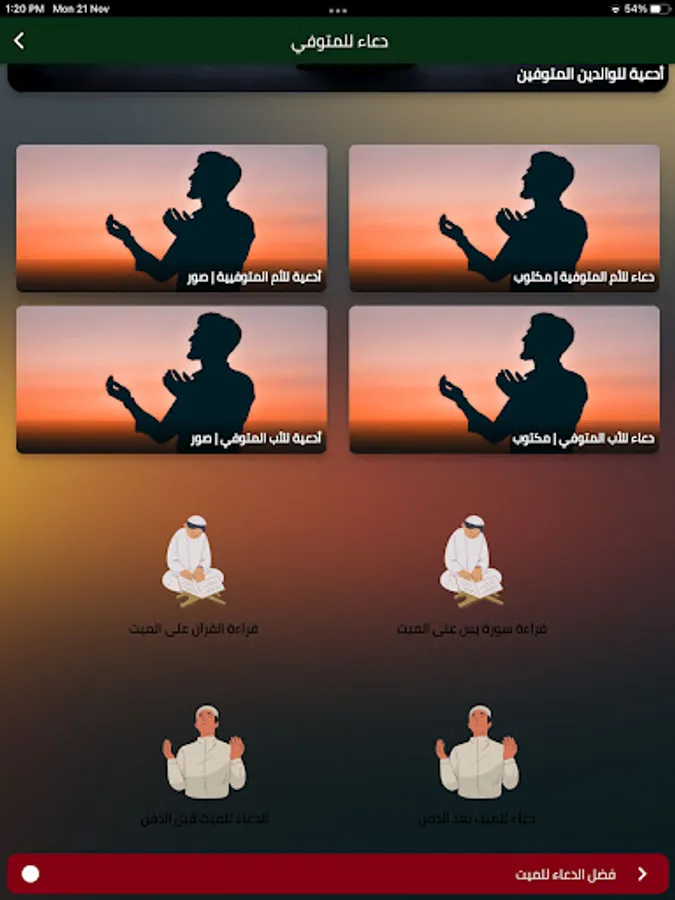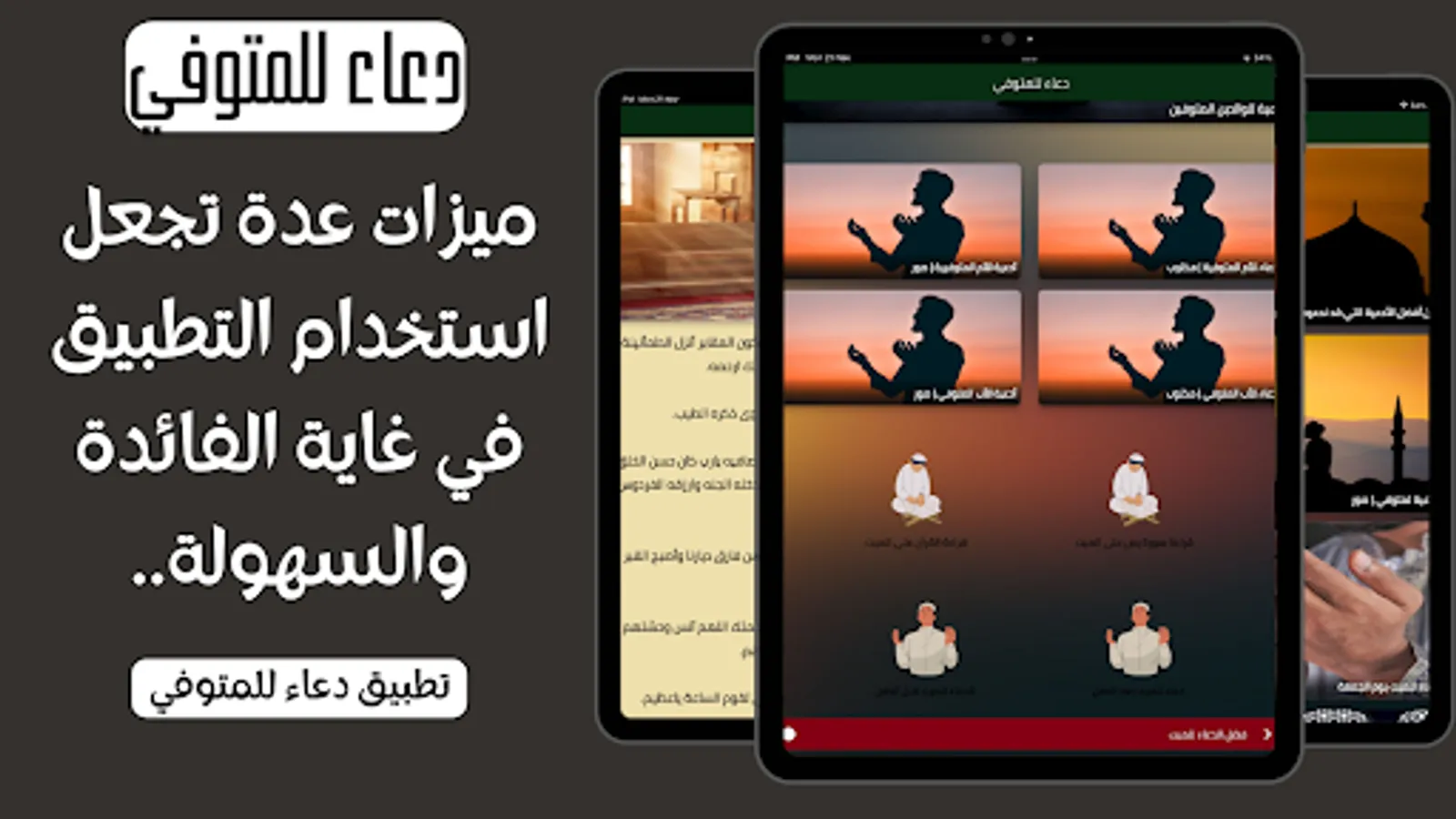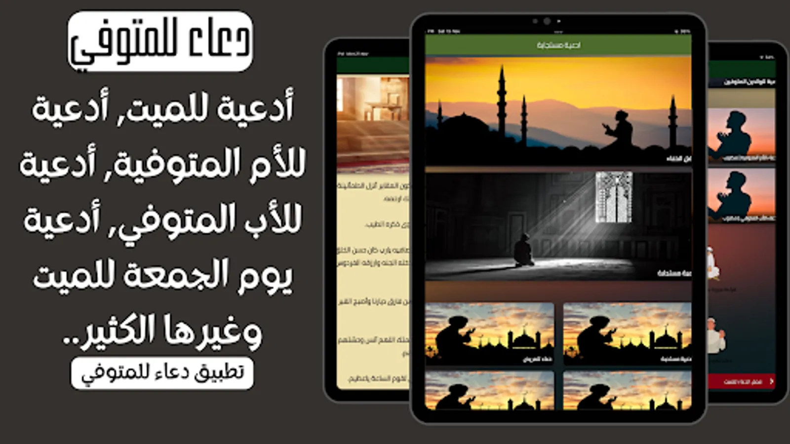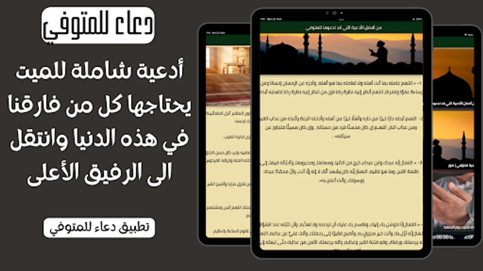 A supplication application for the deceased, in which you find everything that concerns a Muslim in matters of this world and the hereafter, and among those matters is how a Muslim calls upon God Almighty for mercy and forgiveness for the deceased with whom he has a connection, for these matters the scholars of the Islamic nation developed from the Sunnah of the Prophet, may God’s prayers and peace be upon him, and his companions, may God be pleased with them and those Followers supplications answered for the dead, including the beloved, including a prayer for the deceased mother, the deceased father, and parents in general