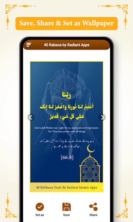 40 rabbana dua app contains duaa in arabic with english and urdu translations.