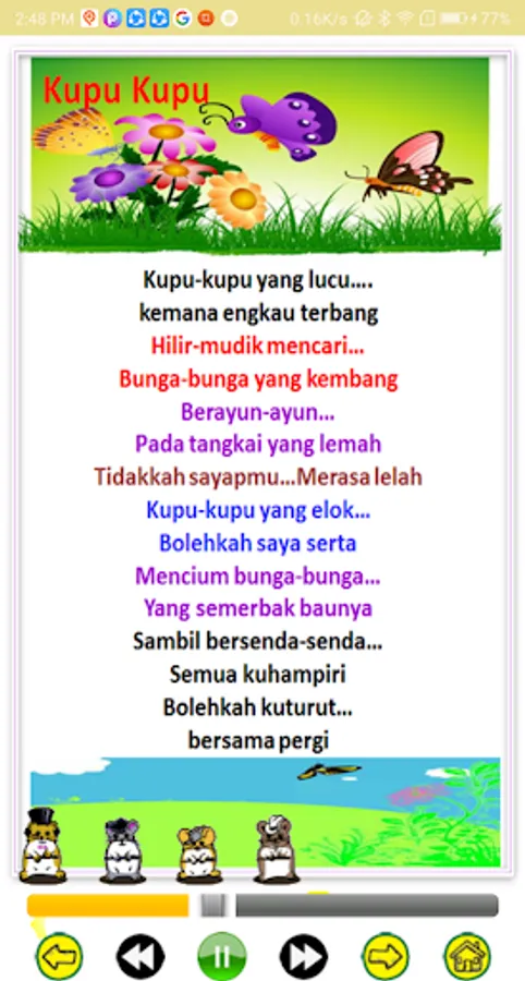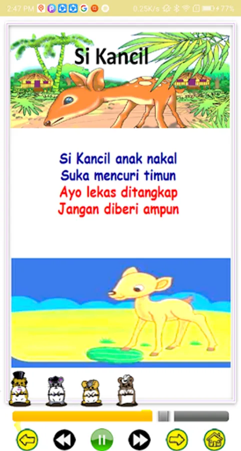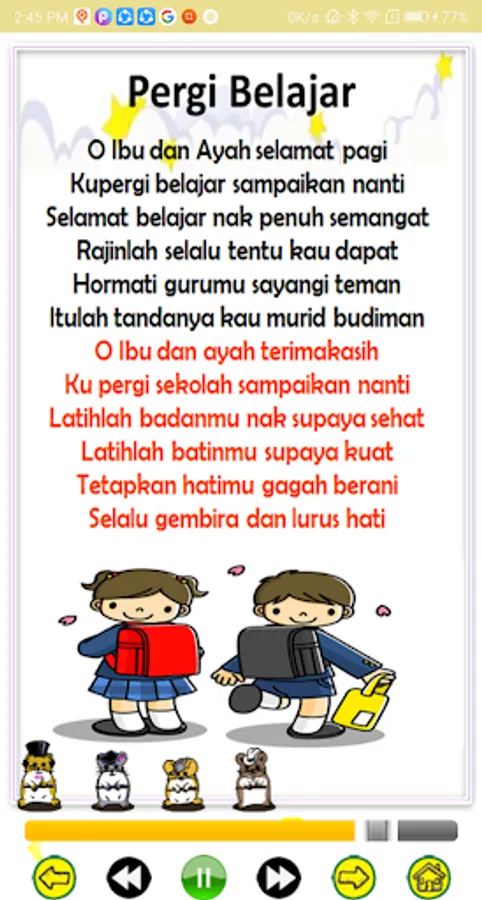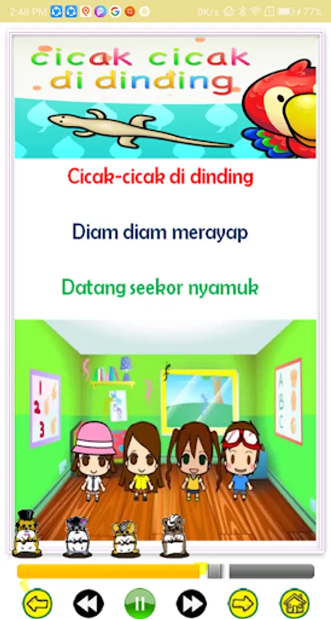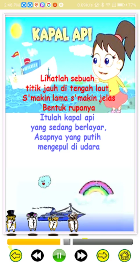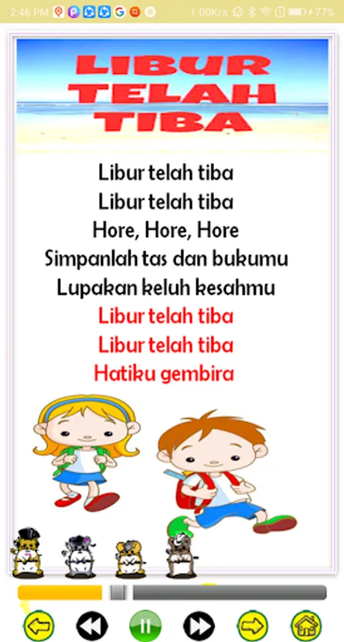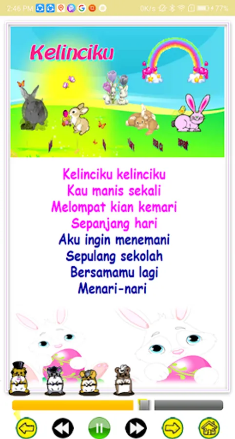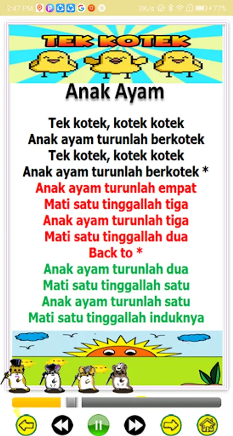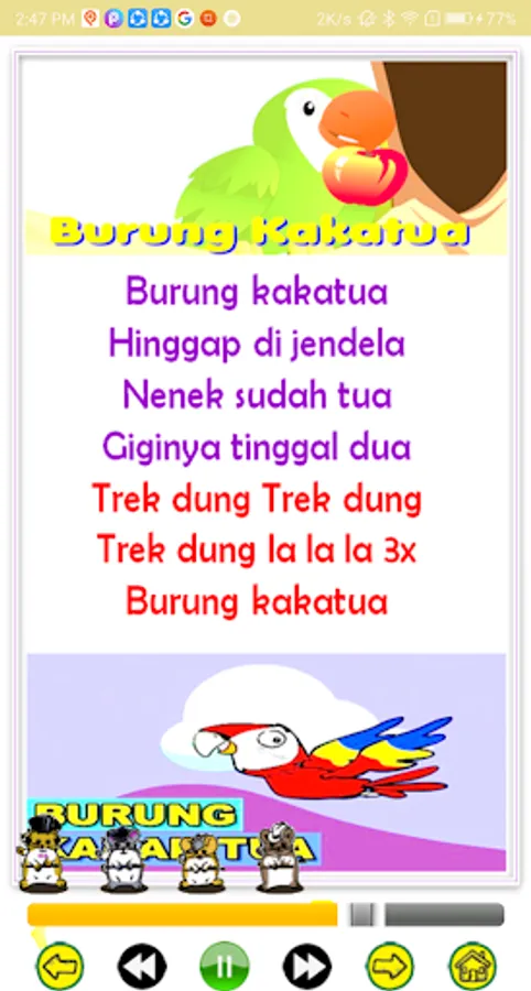 Indonesian child song is an application that contains a collection of popular children's songs with songs suitable for the child's pet. With a single install our children can enjoy and listen to them offline without the need for an Internet connection again.