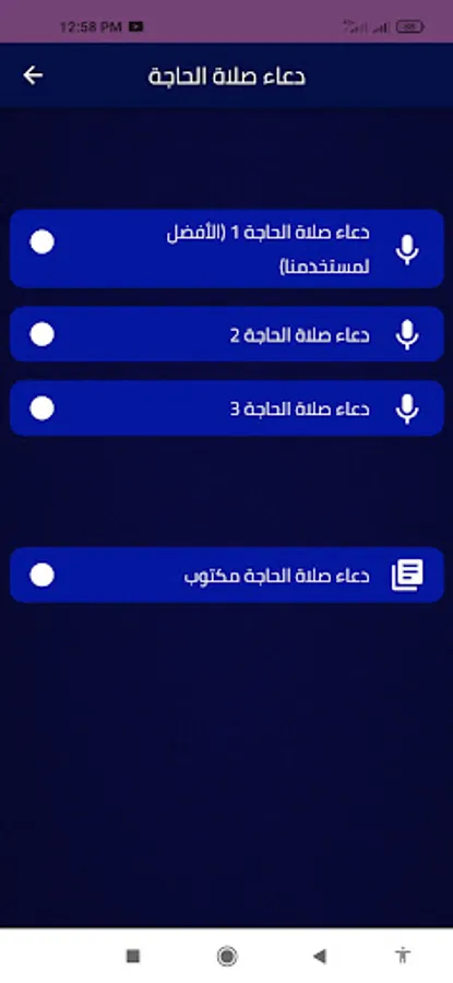 يمكنك التنقل بين أزرار تطبيق دعاء صلاة الحاجة بسهولة