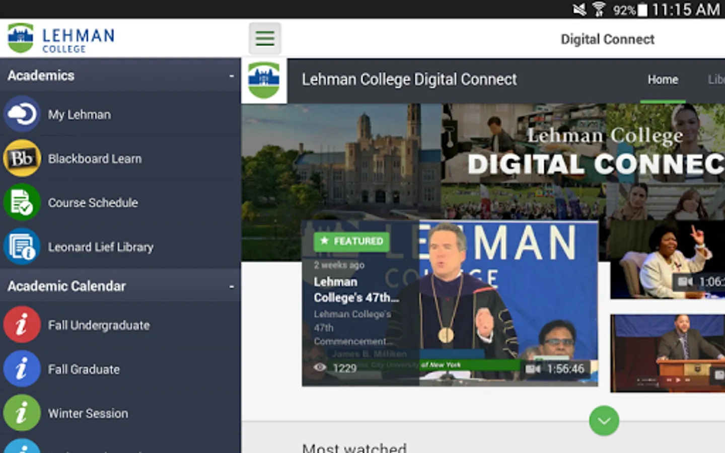The Lehman College App brings the campus to your fingertips and enables you to connect with the Lehman community: Stay on top of your events, classes, and assignments with the built in calendar function, and get notified of important dates, deadlines & security announcements. Make friends, ask questions, and access campus resources at any time!