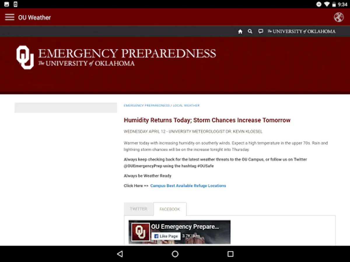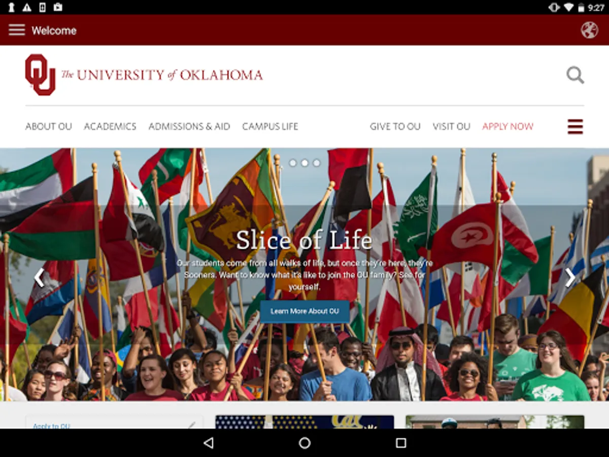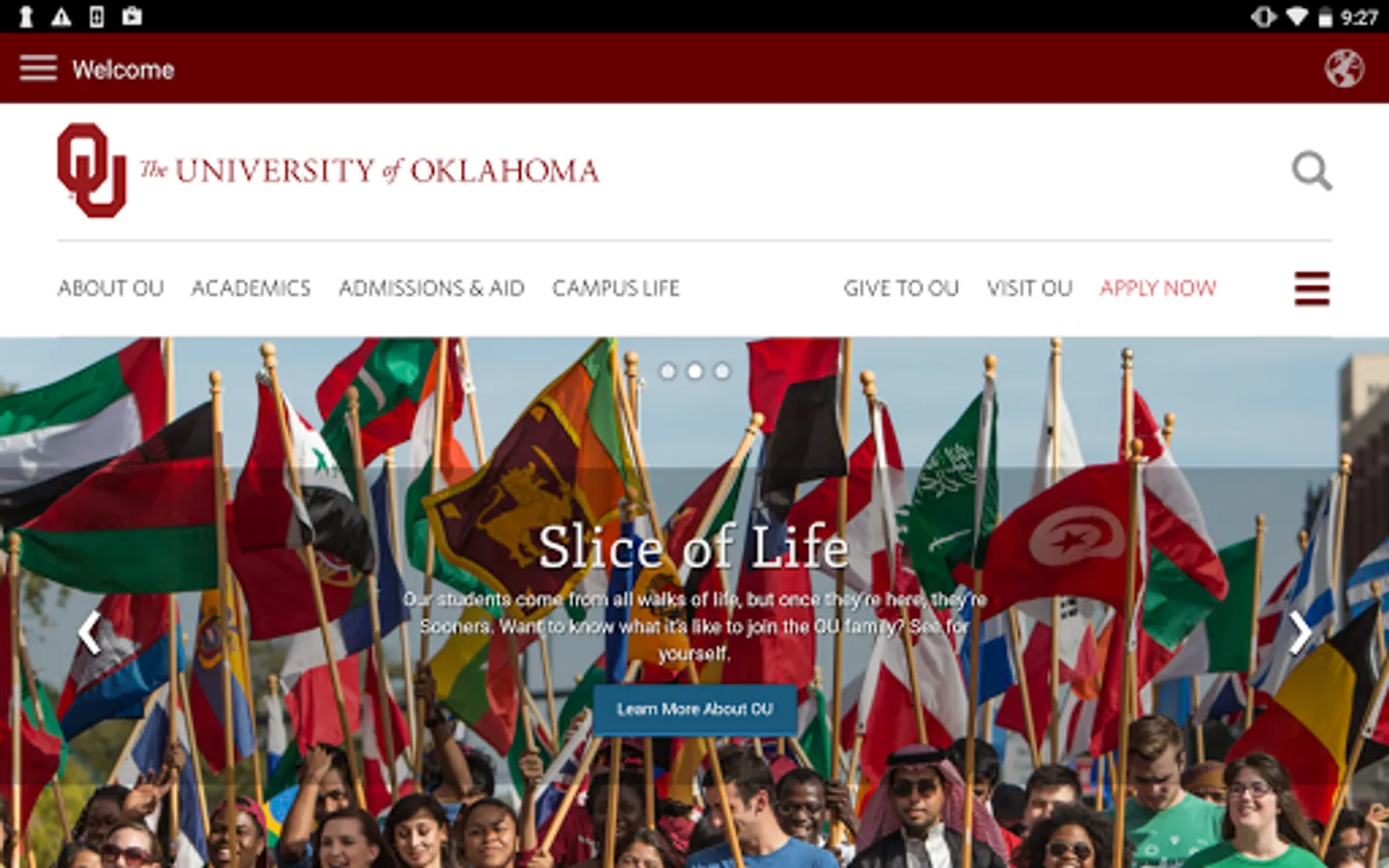The University of Oklahoma App brings the campus to your fingertips and enables you to connect with the OU community: Stay on top of your events, classes, and assignments with the built in calendar function, and get notified of important dates, deadlines & security announcements. Make friends, ask questions, and access campus resources at any time!