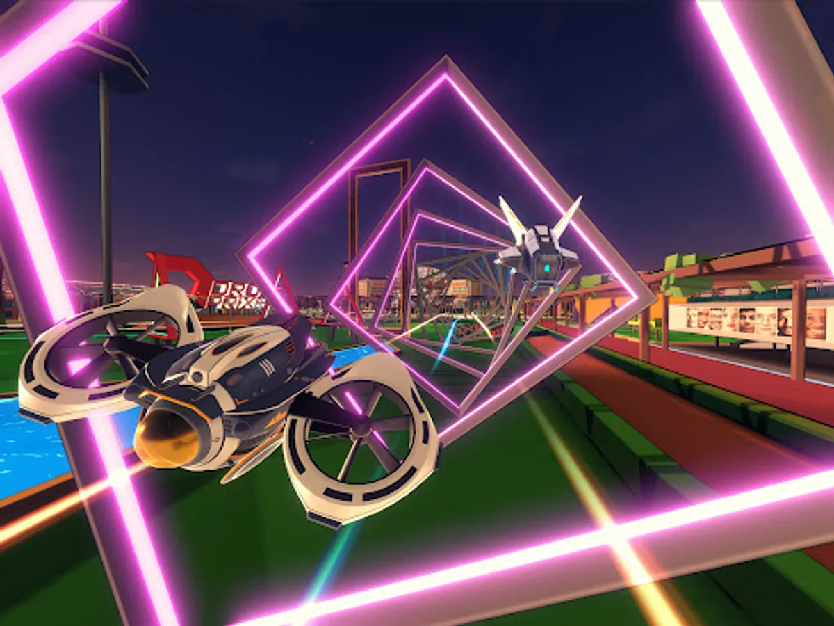 Take part in high speed races against challenging AI opponents across the expo and across multiple timelines