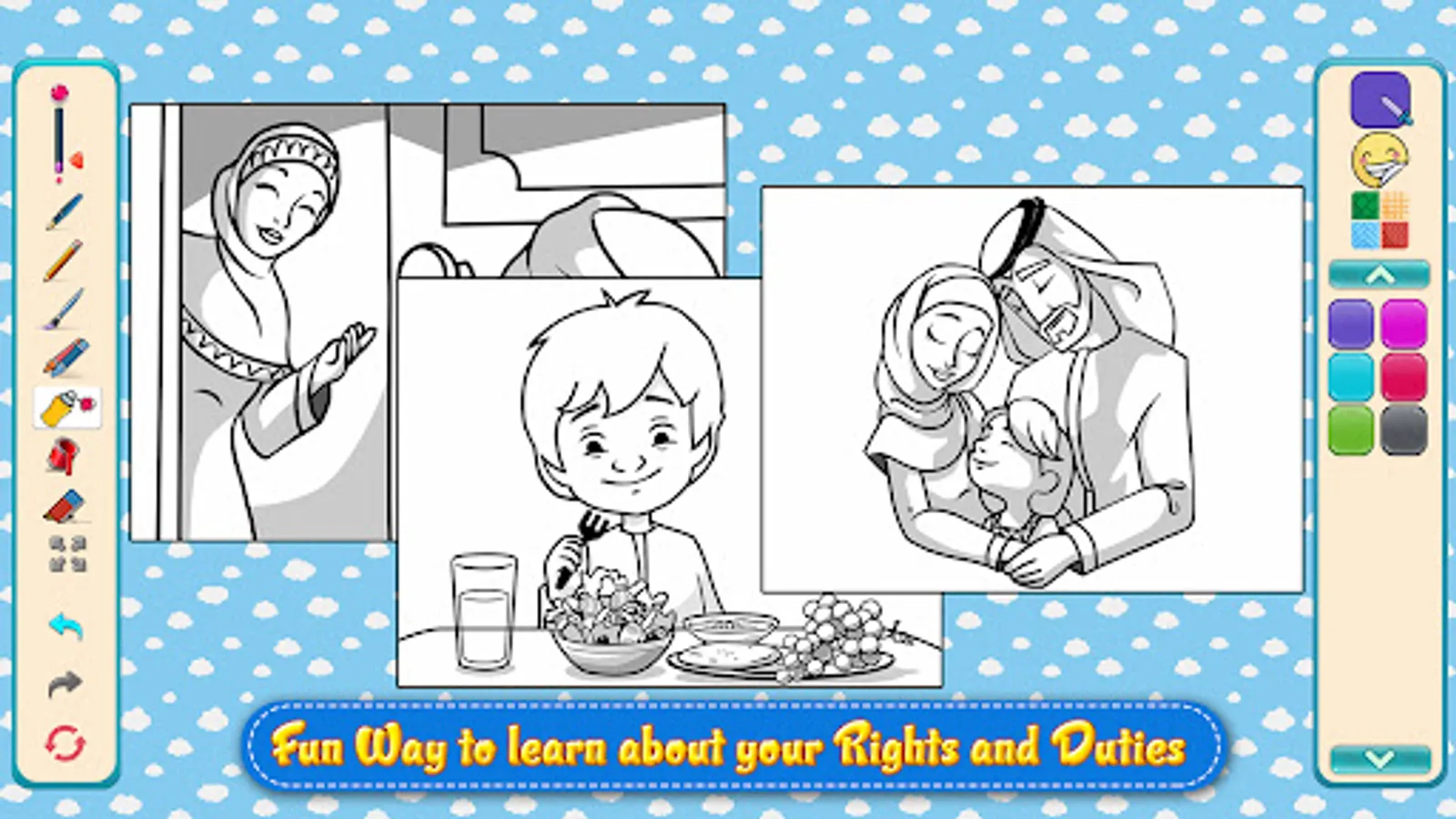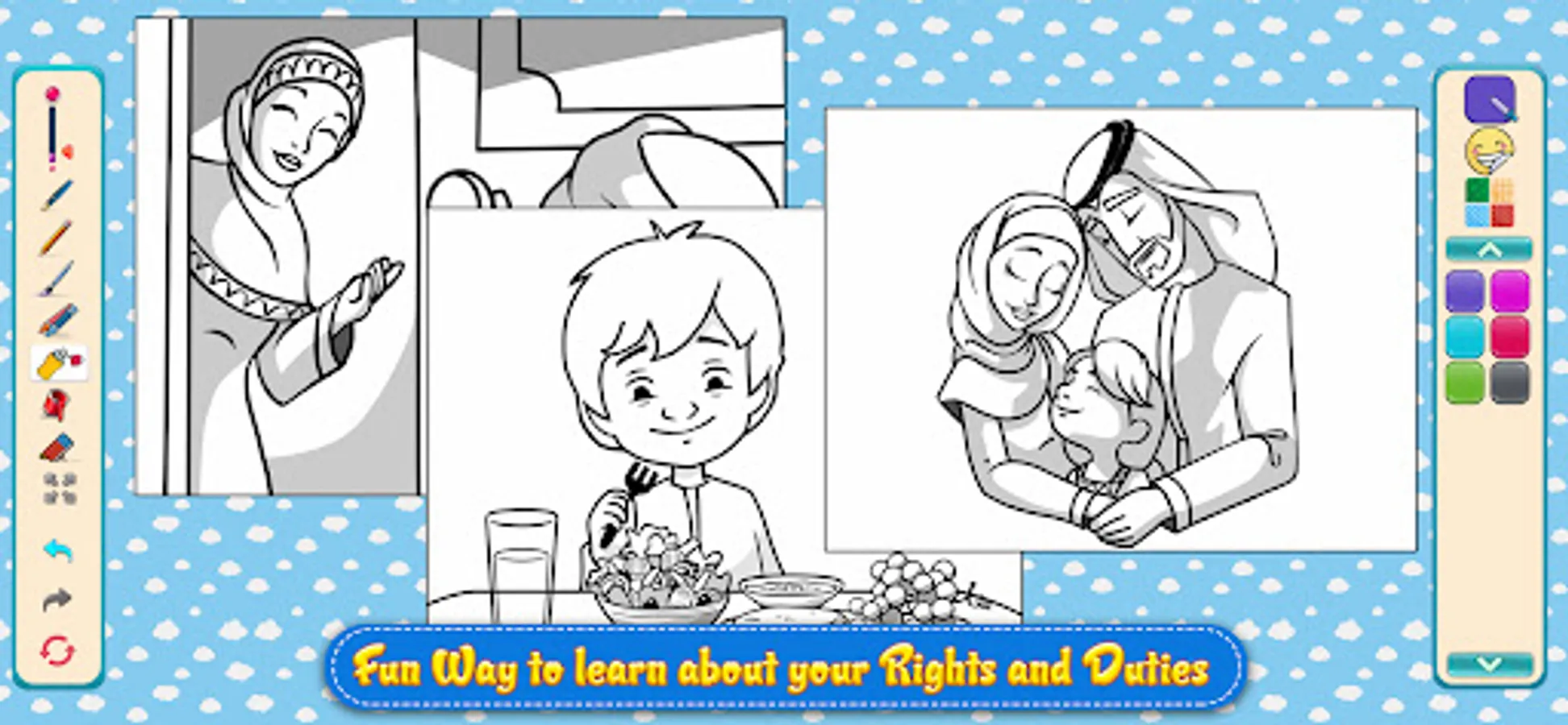 The game My Rights and Duties developed by Dubai Police is one of the games that represents importance of educating future youth in the best way and aim to raise children's awareness of personal rights and duties towards their family and society. Play this game to raise your level of awareness and responsibilities towards the community. Learn about your rights in a fun and simple way. The game contains four types of interesting games and three worlds with more than 100 fun stages.