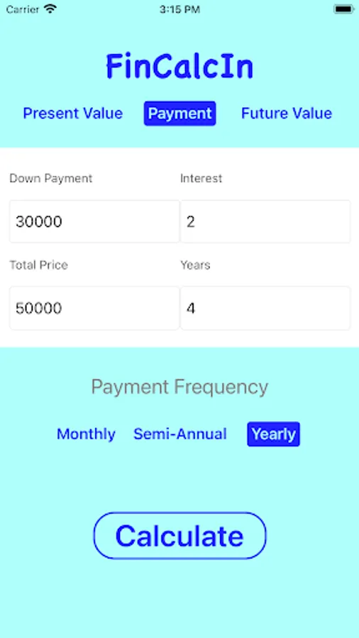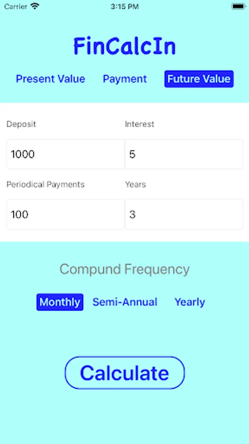 FinCalcIn is a simple, easy to use financial calculator. It can calculate your standard compound interest, but can also calculate payment and present value.