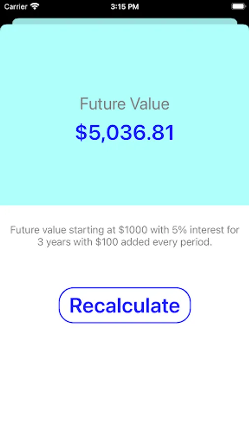 For example, if you want to start saving money for your retirement. You put $1,000 in your account to start. Every month you add $100 at 6% interest. After 30 years, guess how much money you will have. With FinCalcIn, you don't have to guess! The answer is $106,000!