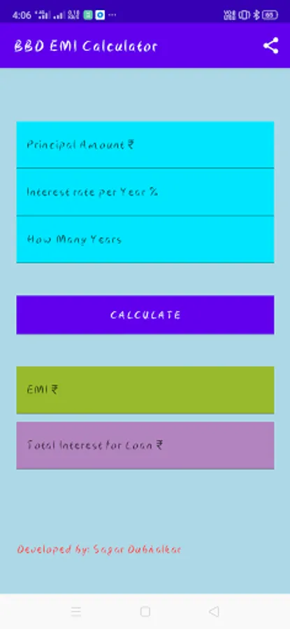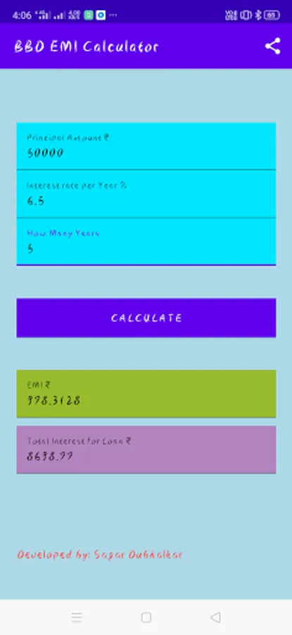 BBD EMI CALCULATOR is a easy and simple to use emi calculator for your loan and interest. Using this tool app you can calculate your interest on your loan amount.