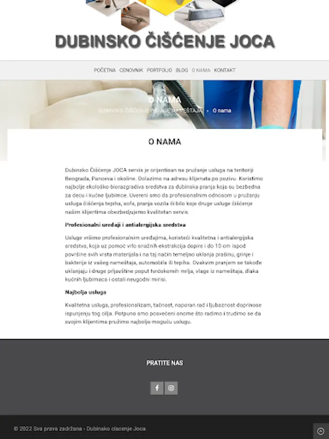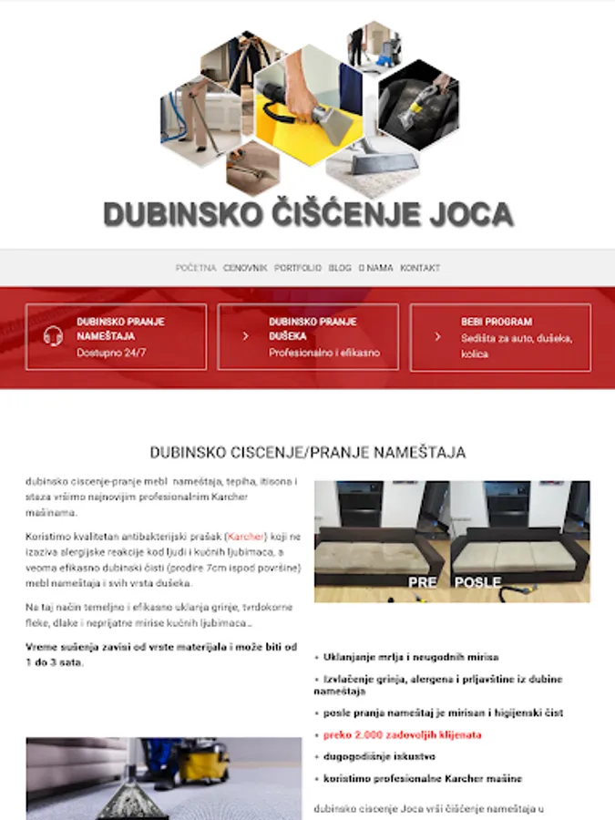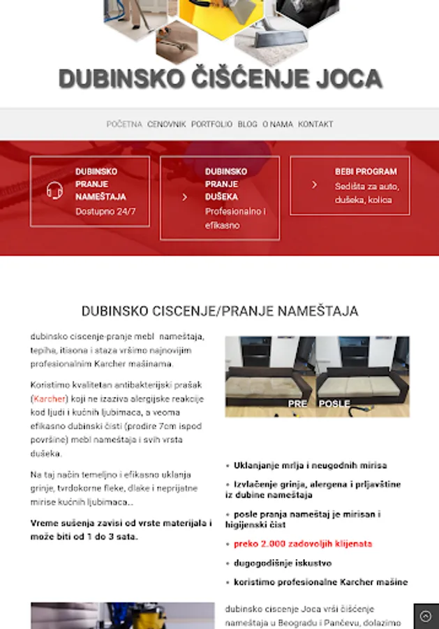 Deep Cleaning JOCA service is oriented towards providing services in the territory of Belgrade, Pancevo and the surrounding area. We come to clients' addresses by invitation. We use the best ecological-biodegradable deep cleaning agents that are safe for children and pets. We are convinced that by providing professional services for cleaning carpets, sofas, washing vehicles or any other cleaning service, we provide our clients with quality service.