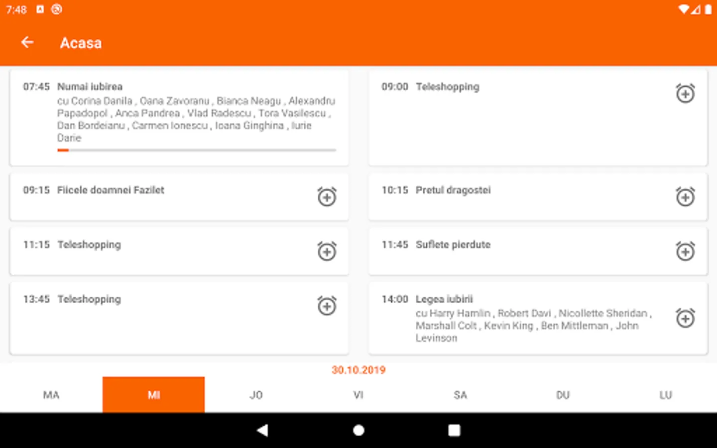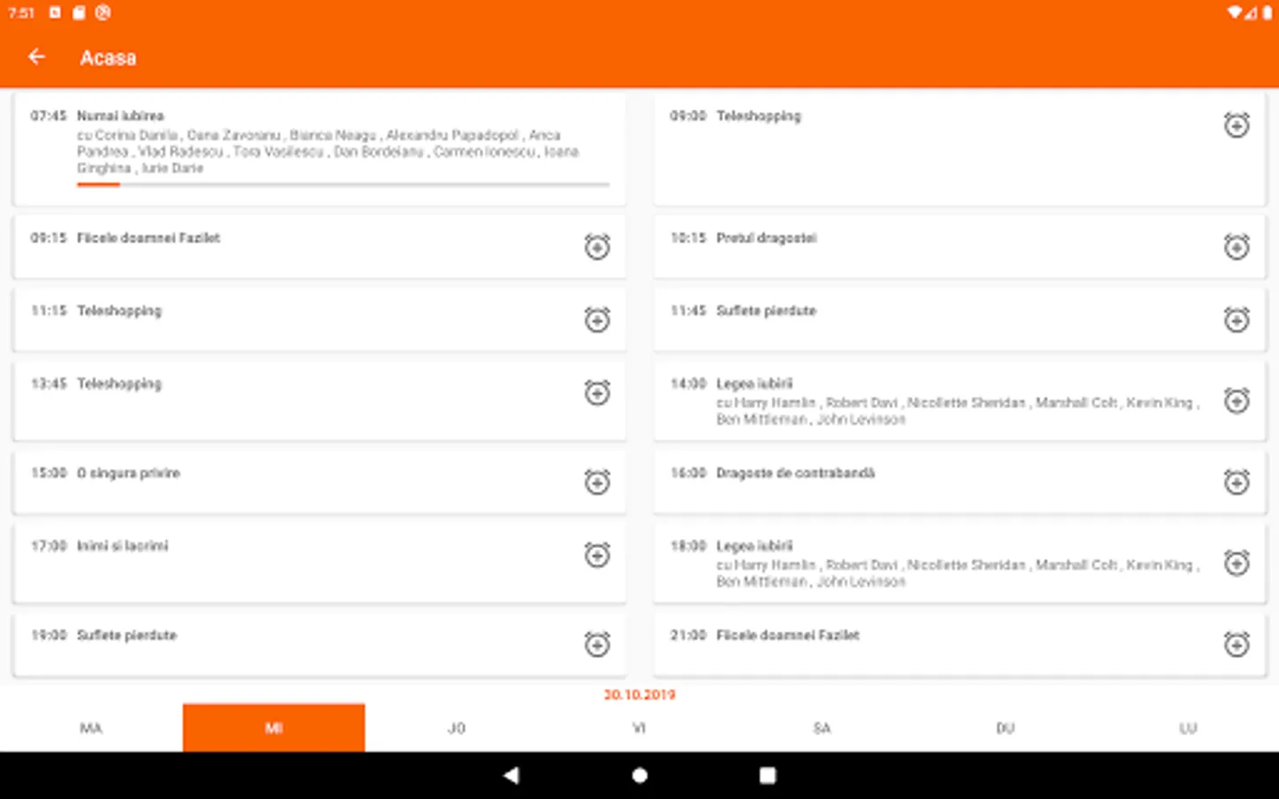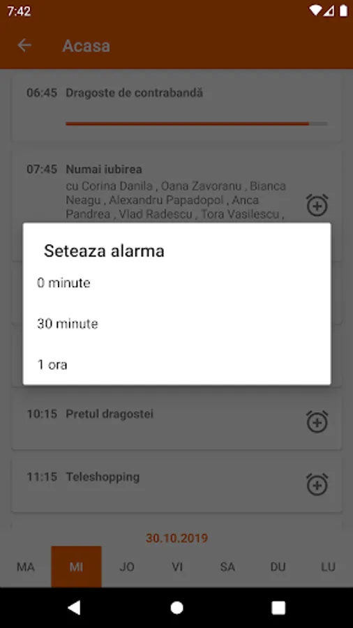 + seteaza o alarma pentru emisiunea favorita din programul TV