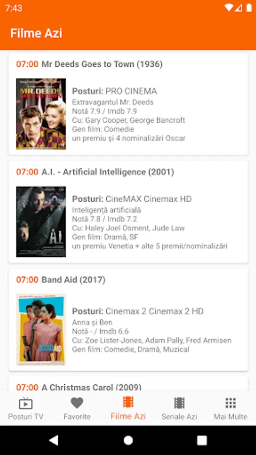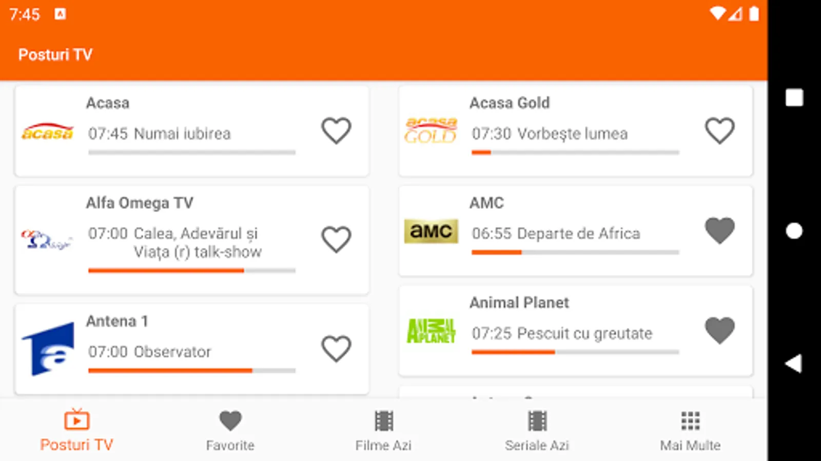 Descopera programul TV complet direct pe telefonul mobil. Fii notificat cand incep emisiunile favorite. Verifica ce filme si seriale se difuzeaza astazi la TV.