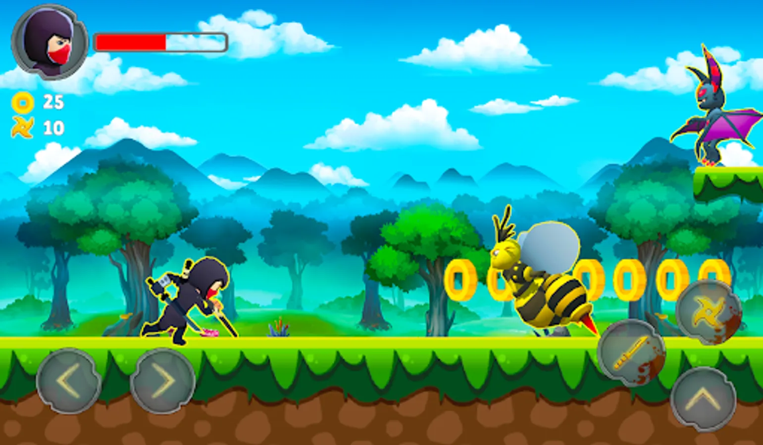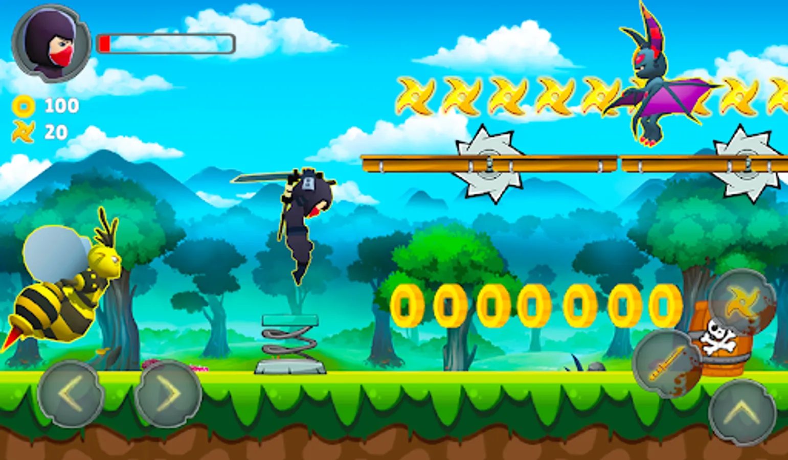Unleash your inner ninja in this action-packed 2D platformer game . On an epic journey as a skilled ninja, navigating through treacherous terrains and overcoming obstacles in four distinct worlds. The forest world is filled with lush greenery and dangerous creatures, the desert is home to scorching sands and fierce warriors, the lava world is a fiery inferno with molten dangers at every turn, and the sci-fi world is a futuristic landscape with cutting-edge technology and deadly robots.