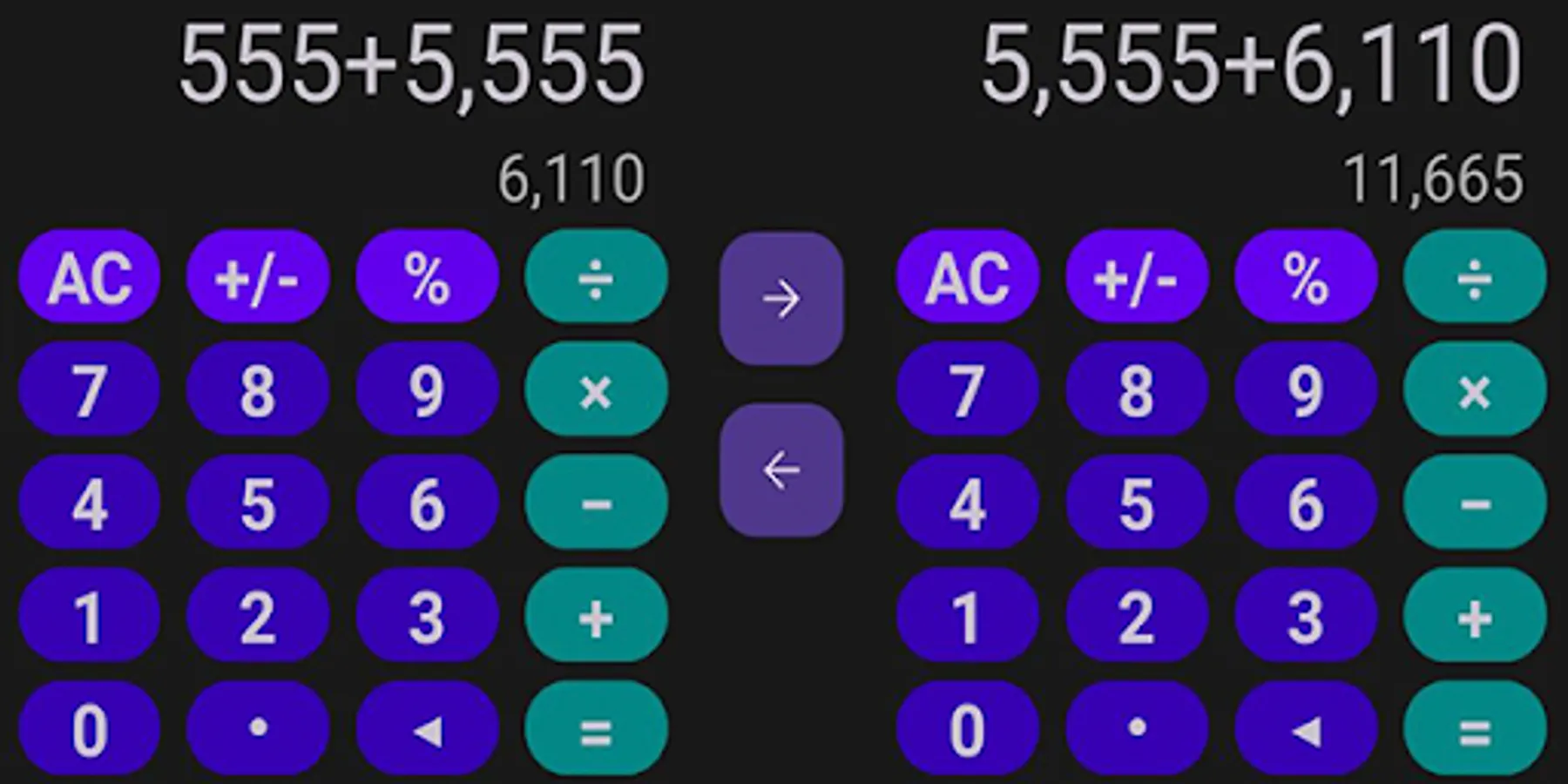 In front of you is a simple calculator with 4 functions and a panel containing advanced functions that include history, real-time charts, basic conversions and more. So you can use what is most convenient for you.