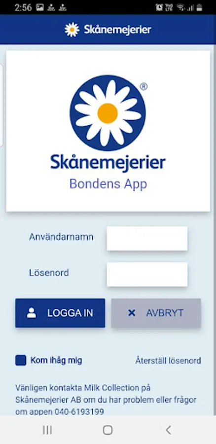 Once you download the app, contact Skånemejerier to get your login details if you have not already received them.