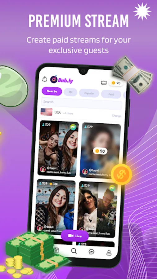 Millions of talented broadcasters, dancers, singers, foodies, comedians live-stream in Dubly. Watch 24/7 great live streams, such as live gaming, live music, and live chatting similar to Bigolive and TikTok.