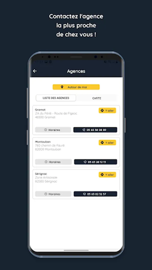From the Agri Montauban application, you can quickly find the contact details and schedules of stores and workshops.