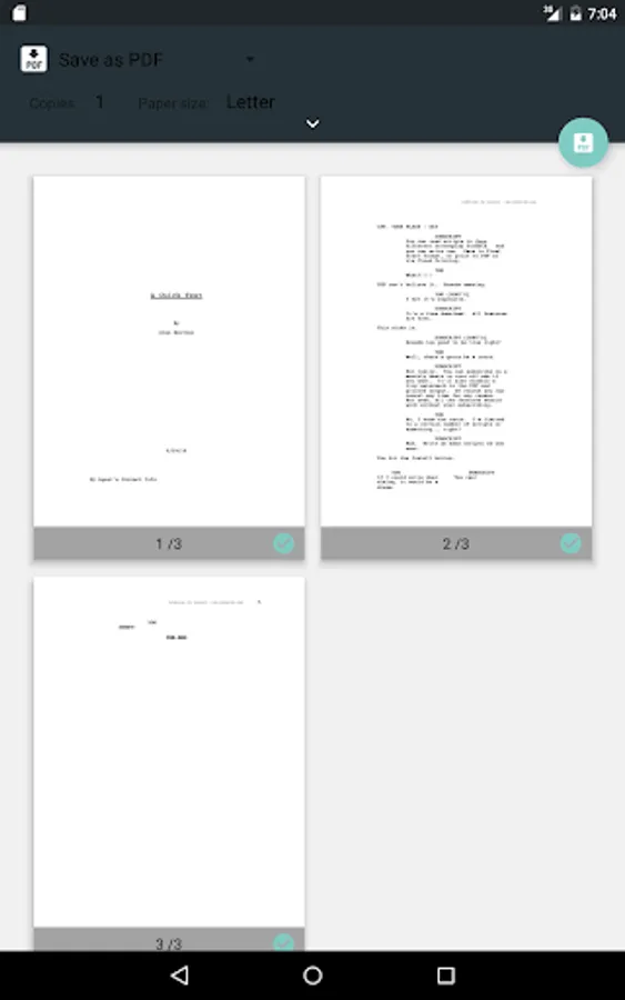 Finished? With a single swipe, DubScript does the hard formatting for you! Indentation, page breaks, CONT'Ds, page numbering, margins, and text styling appear like magic!