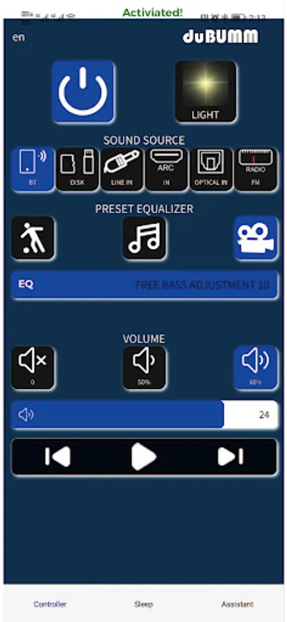 It is an App to control the sounder or speaker through BLE signal. The functional includes speaker switches, built-in natural audios for good sleep and localized languages.