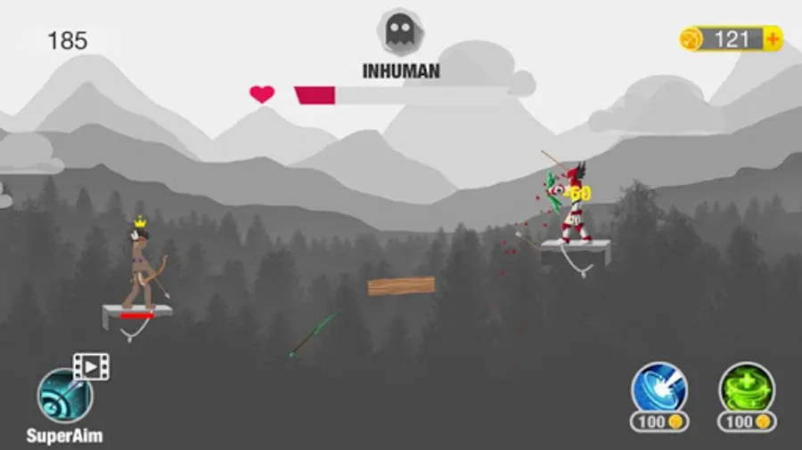 👍 Simple and intuitive controls. Tap on the screen and pull to charge the bow with an arrow. Choose strength and angle of attack!