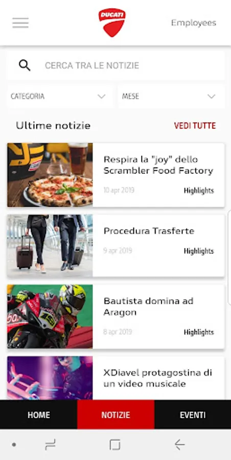 Ducati Employees is a channel for the exclusive use of the Ducati employee created to increase knowledge, participation and engagement in the company.