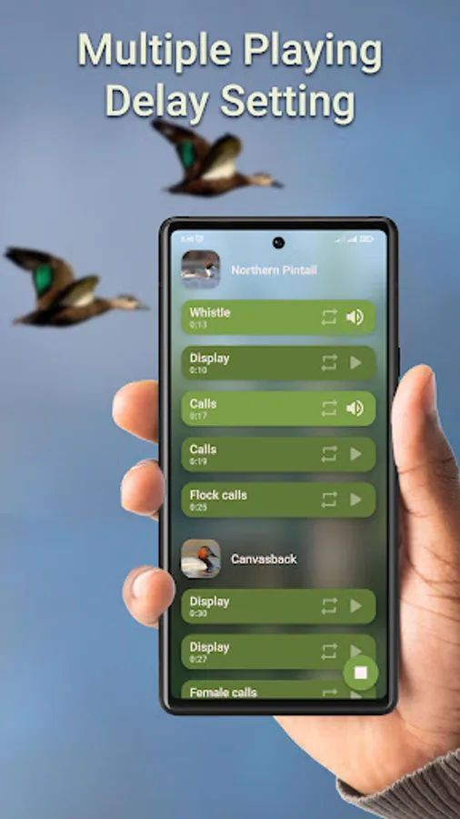 App equipped with the ability to combine calls and set delay for each one, so you can pick and choose which calls and how many calls you want to play.