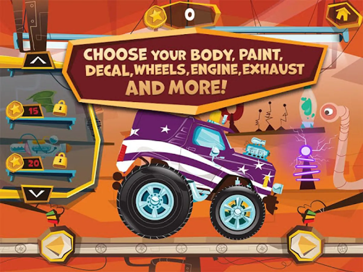 - RACE: Race your truck through snow, jungles, sewers and an ever changing surprise track for unlimited play