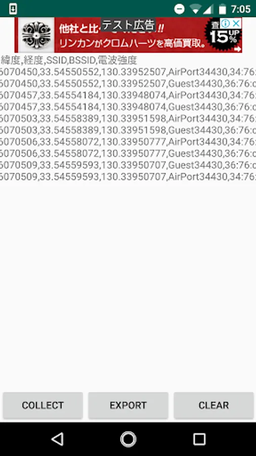 The information to be collected is latitude, longitude, SSID, BSSID signal strength, and acquisition date / time.