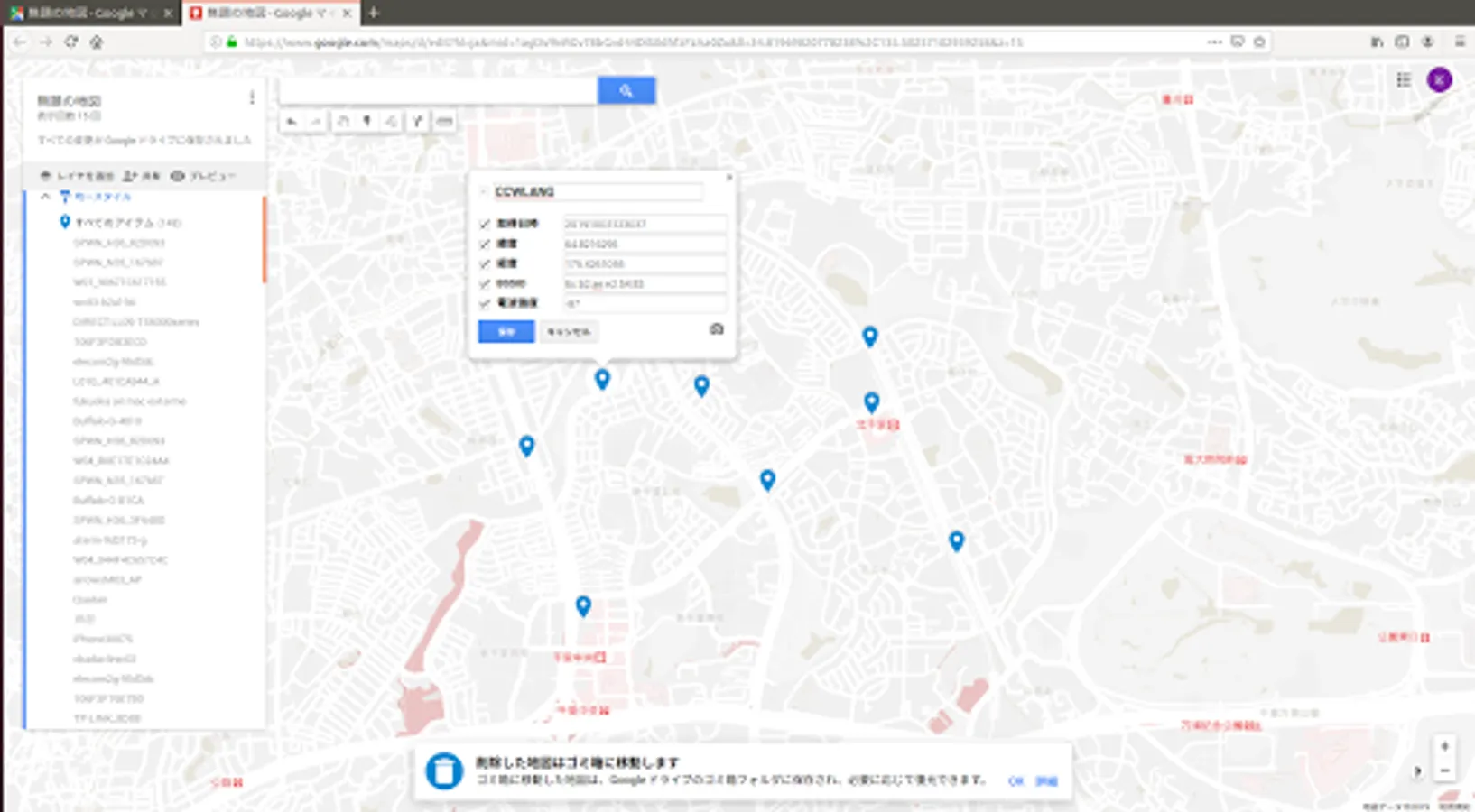 By reading the output data with GoogleMap etc., you can put the collected WiFi location information on the Map.