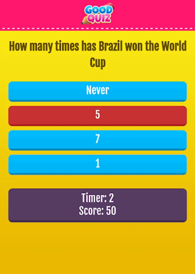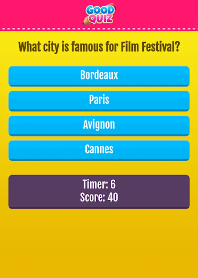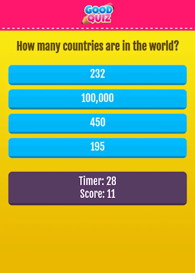 Good Quiz is Fun and Challenging Quiz Game, where you need to collect score by answering the questions before the time runs out!