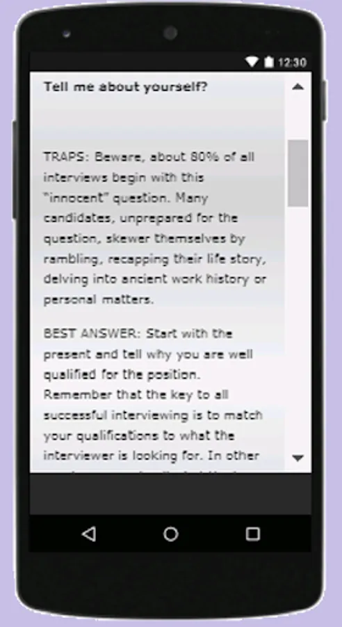 This App would help thoroughly prepare you for a job interview. Download the App and if you like the App please Rate the App a 5star.