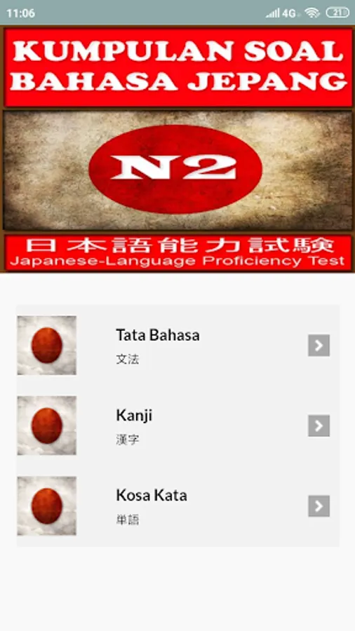 Aplikasi JLPT N2 - Tes Kemampuan Bahasa Jepang (日本語能力試験) ini dapat membantu Anda yang ingin menempuh Ujian Kemampuan Bahasa Jepang. Aplikasi ini berisi kumpulan soal dan jawaban JLPT untuk Level 2 (N2).