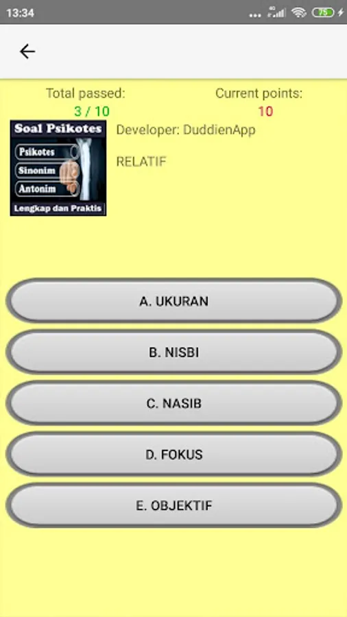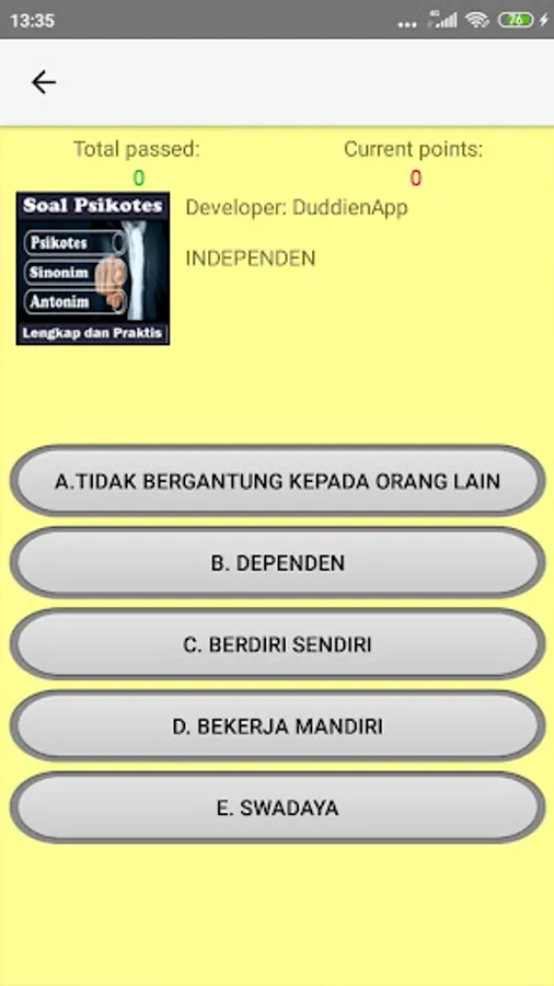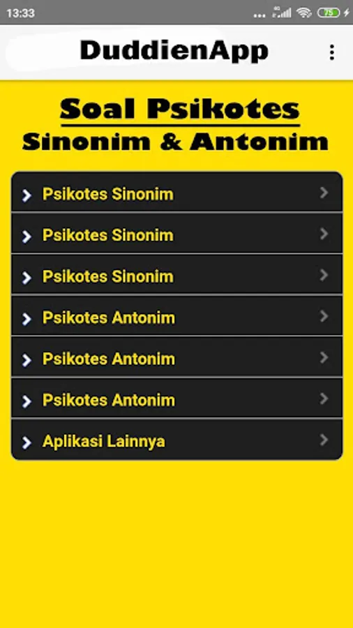 Aplikasi ini berisi Kumpulan Soal Psikotes Sinonim Antonim.