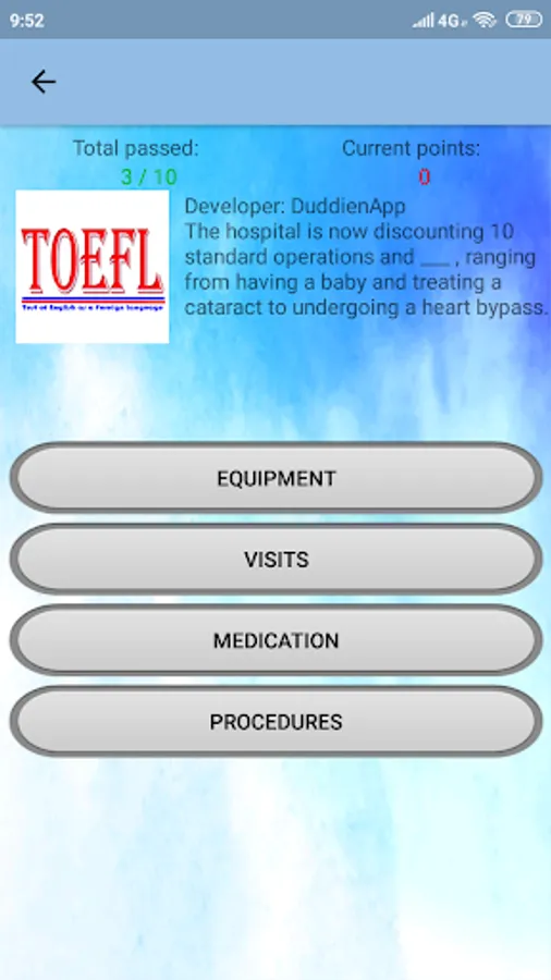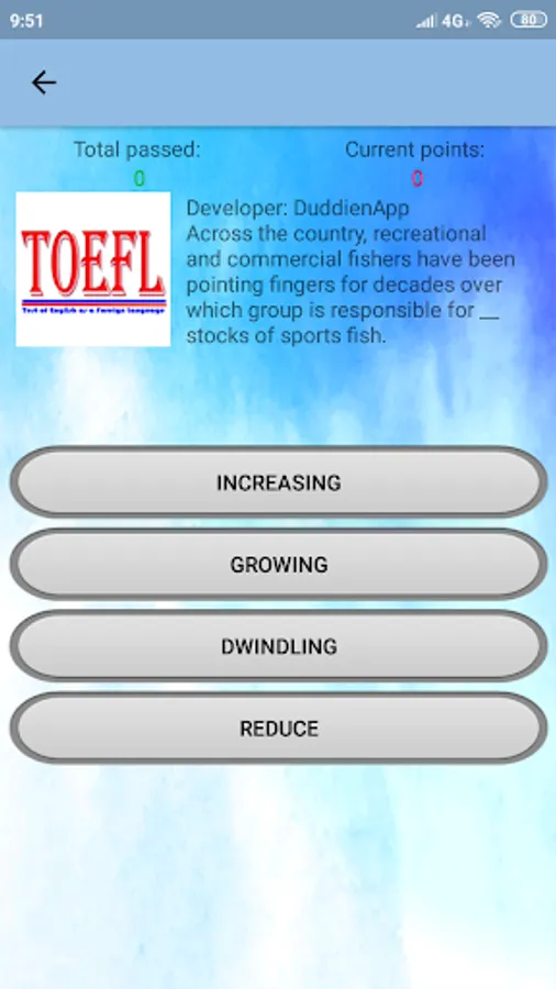 This App would help thoroughly prepare you for TOEFL Practice Test. Download the App and if you like the App please Rate the App a 5star.