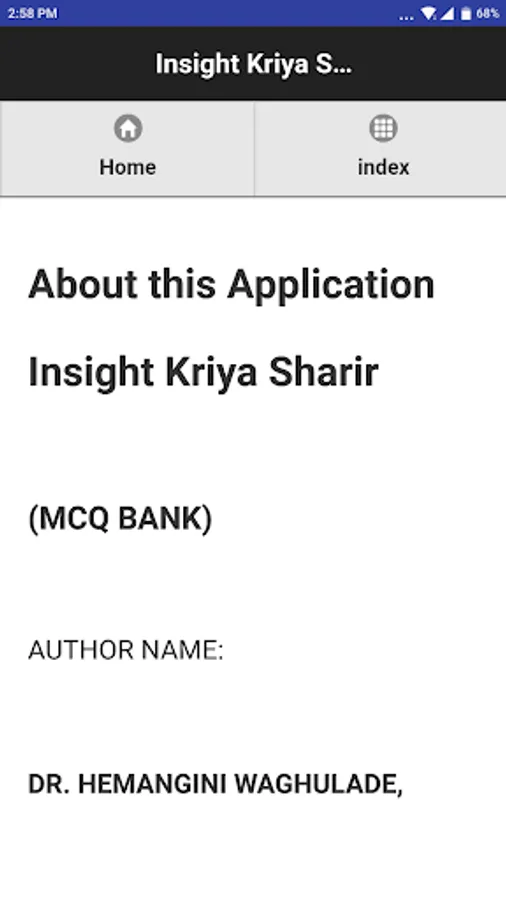 The App entitled Insight Kriya Sharir is especially designed for students of FYBAMS & PG course. It includes MCQs related to Kriya Sharir keeping in view the CCIM syllabus as per the division of papers. Without extensive practice, MCQs cannot be answered as they need instant recollection from memory. The students attempting to answer these questions will get thorough knowledge of Kriya Sharir which will be beneficial to them in strengthening base of this subject. This app will also be beneficial for PG aspiring students and for those who are preparing for various entrance examinations. This sincere effort will be successful if the students achieve real benefit from this application.