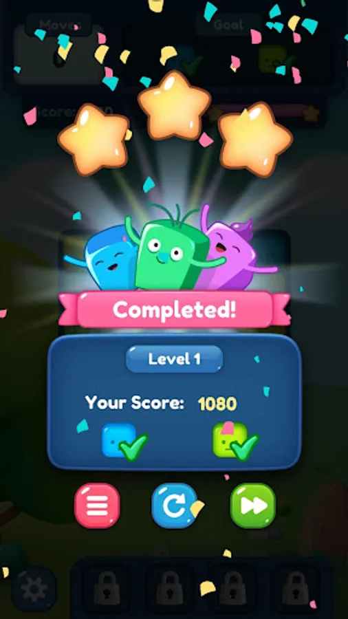 + Achieve required score or goal items to pass levels with limit moves or time.