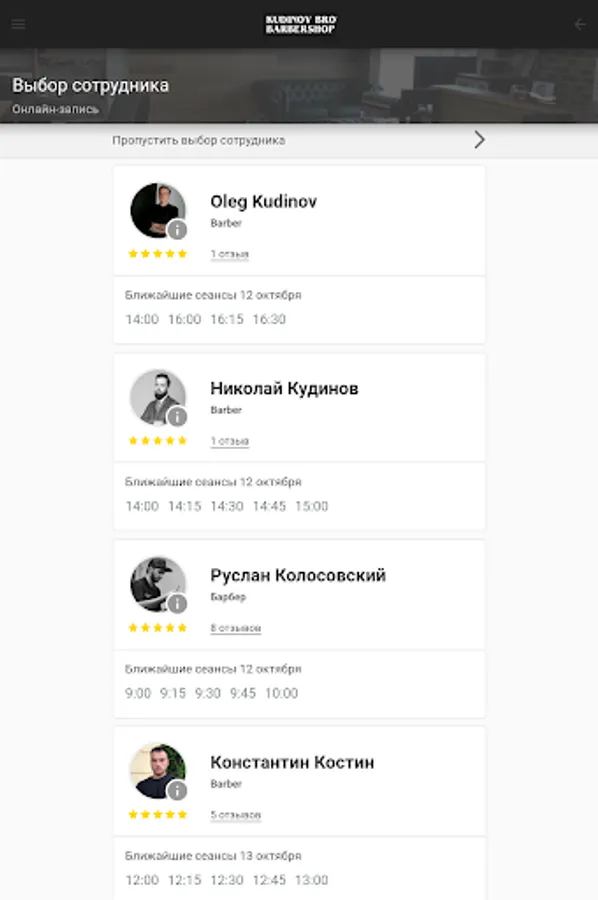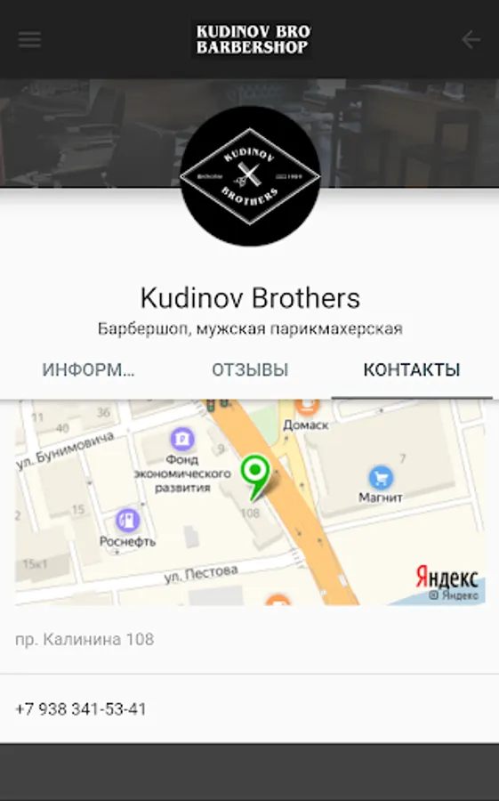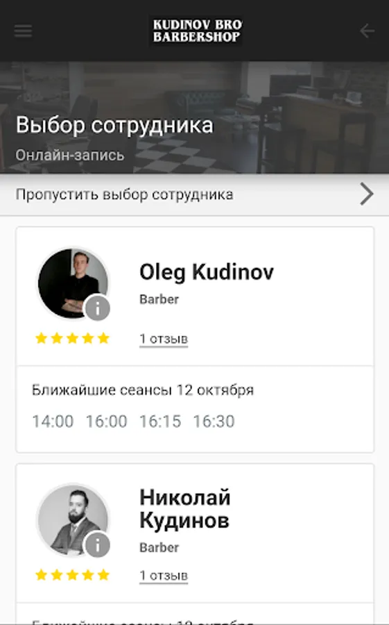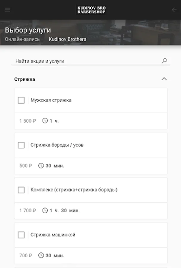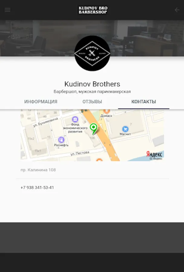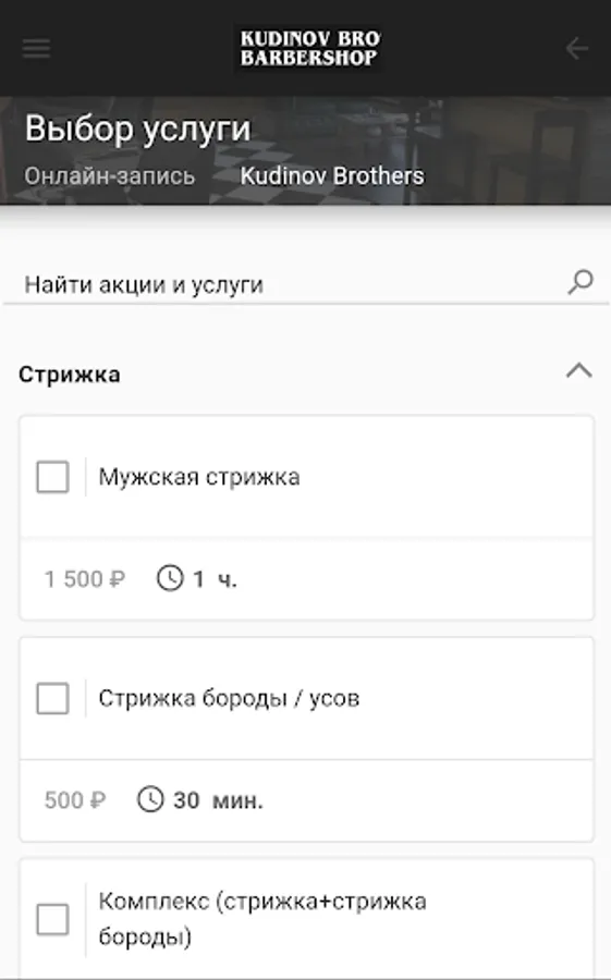 The official app of Kudinov Brothers Barbershop. Pyatigorsk